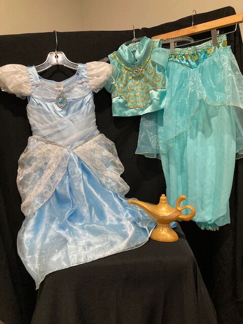 Size CHILD 5/6.... DISNEY STORE Princess CINDERELLA and JASMINE.... Cindrella $20 Jasmine w/Talking, Light-up Lamp (Castle Collection) $35 Located in East Sandy