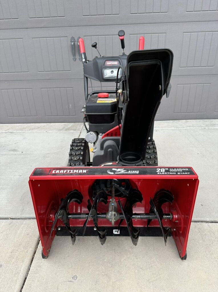 VenmoCraftsman 28” Two-Stage Snow Blower – Like New! • 277cc OHV Engine – 9.0 HP / 12.5 lb-ft torque • Electric start (plug-in) + pull backup • 28” clearing width – EZ Steer power steering • 6 forward / 2 reverse speeds – Trigger-turn control • Headlight – Remote chute & deflector • Barely used, garage-kept, runs great Ideal for large driveways & heavy snow