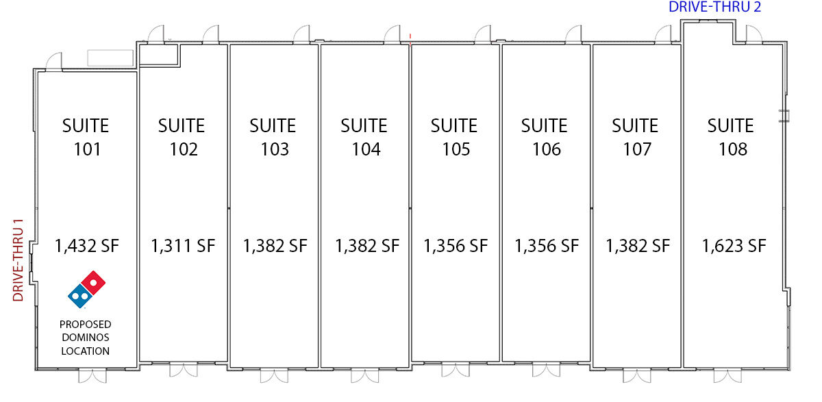 Two units include a high-demand drive-thru, expanding possibilities for food, beverage, and quick-service concepts. Units may be combined to serve individual business needs.