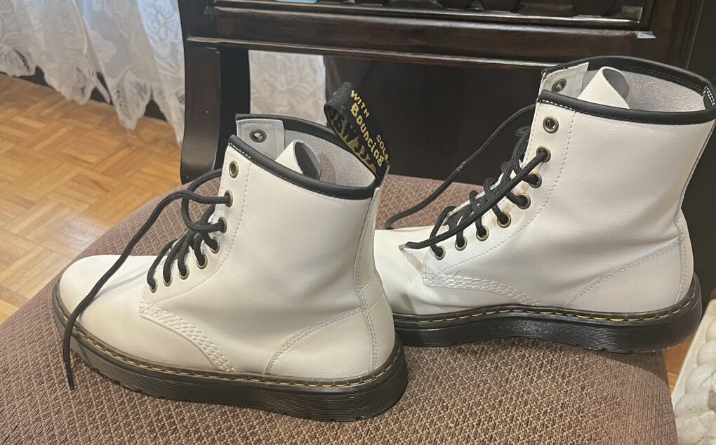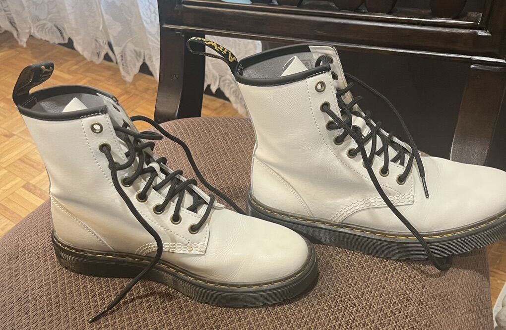 VenmoWhite leather Dr. Martens Zavala combat boots with 8 eyelets and lace yo closure. These boots are pretty much brand new. They were put in in e and never really worn. Women’s size 8, men’s size 7