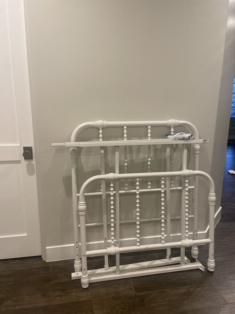 Great condition! Our daughter just upgraded to a larger bed. Comes with all the hardware and a box spring. Please text with any questions.