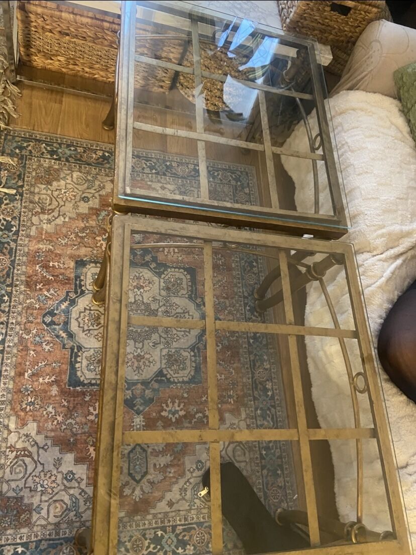 Nice quality metal square 2 tables in good condition. They are almost square 27" x 24" at the top and it's 22 inch high please look at the photos. $20 each