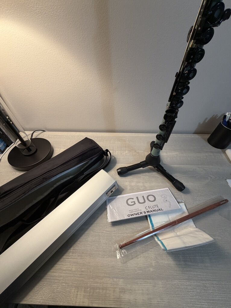 ApplePayThis Guo New Voice C Flute is just like new. It’s only a year old and has hardly been played. The material is a high polymer plastic, making it super lightweight (only 8.82 oz) and weather/water resistant (perfect for playing outdoors in marching band). It’s fun to play and has a sound that is similar to a silver flute so it’s great for concert band too. Other specs include a hand cut embouchure hole, B foot with gizmo key, and open holes. This costs $1,200 new. Selling for $800 firm.