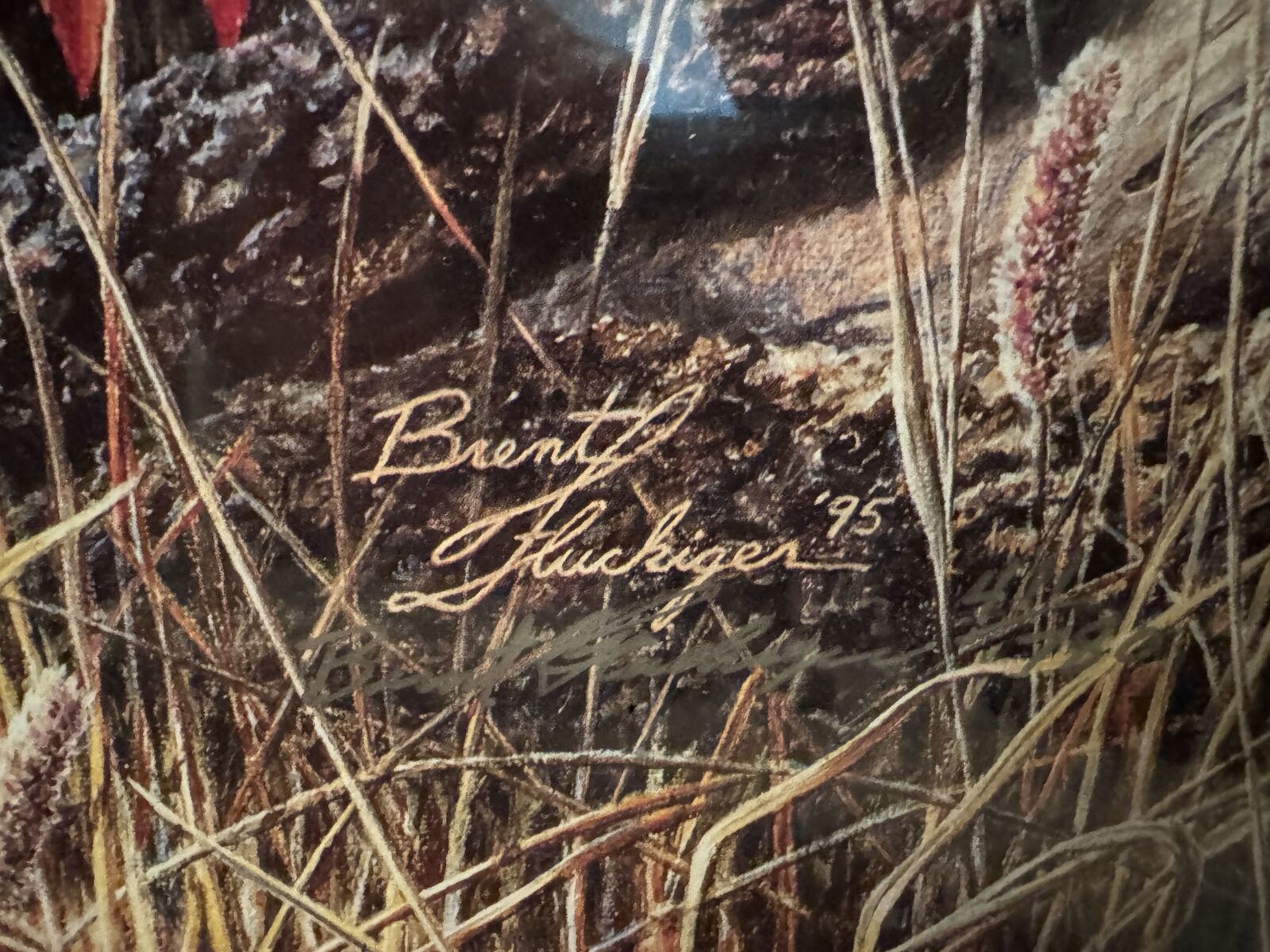 Black wolf print matted and in a pine frame by Brent Fluckiger. Total dimensions 38" x 30". Enjoy this print or put your own in this quality frame and matte. To see text 801-360-9948.