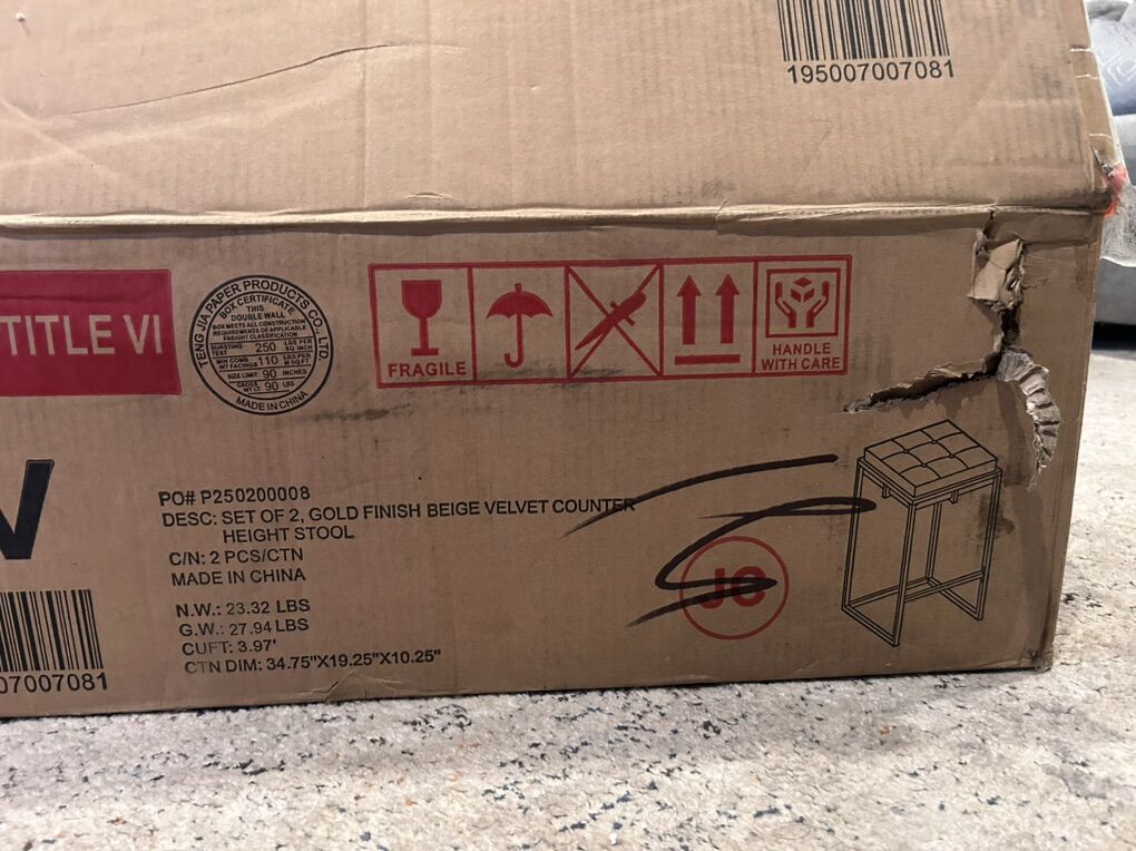 VenmoNew 24” height gold finish beige velvet stools from Target. Box was sealed and I just opened it and made sure all parts and hardware are there. No issues. Retails for $220. Cash or Venmo First come first serve