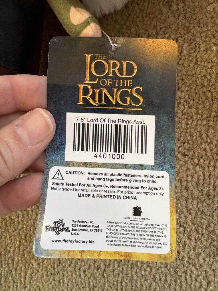 NEW WITH TAGS The Lord of the Rings Plush Set of 6 Figures, by Toy Factory. Includes Frodo Baggins, Samwise Gamgee, Aragorn, Gandalf, Gimli, and Legolas. Each 7” tall. New condition. Text only. Cash or Venmo.