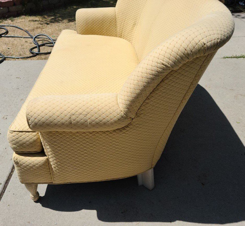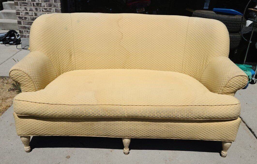 Couch and or Chair. Early 2000's. Wesley Hall Madison Settee Couch includes 3 down Filled throw pillows. Wesley Hall Chair is extremely comfortable. Both need recovering or slip covers. No structural damage, no rips or tears. Used in a high end Spa. Design Themes: Shabby chic, Vintage-inspired, Modern farmhouse, coastal farmhouse, English cottage or cottagecore.