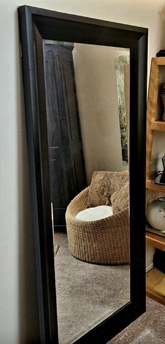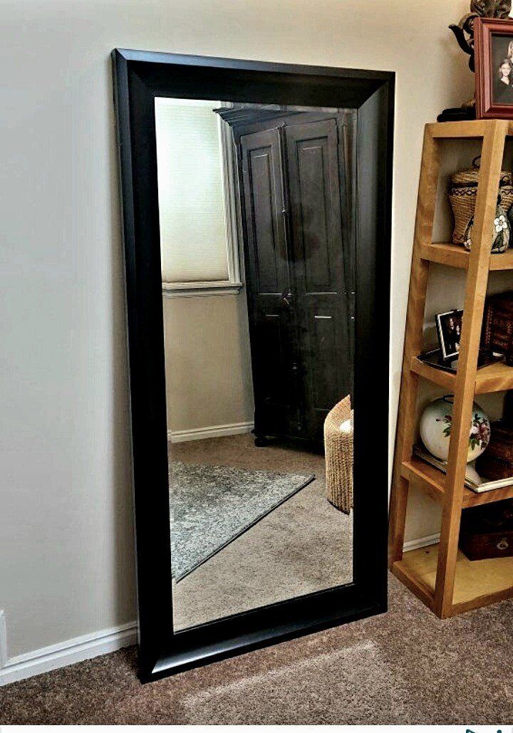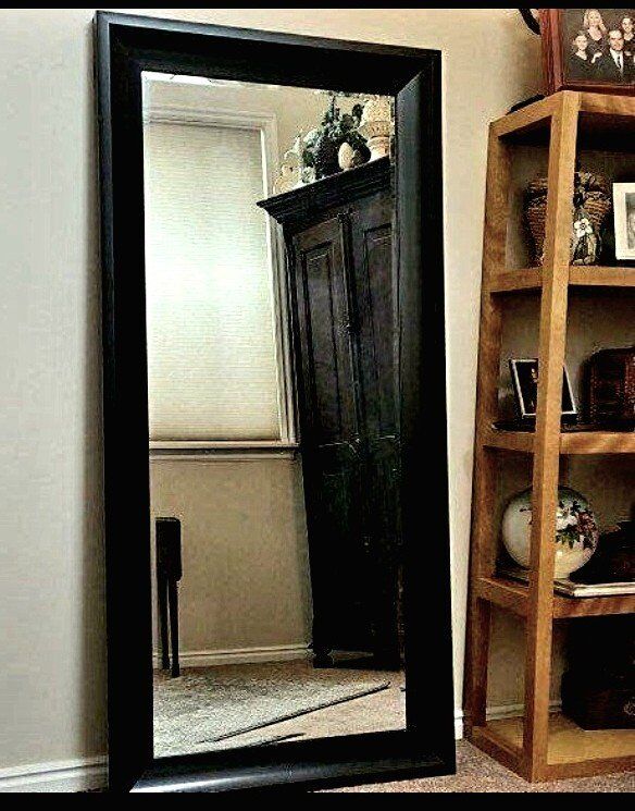 Black framed leaner mirror There are hooks on the back if you want to hang. World Market brand. There are lots of other pictures above. Please check out my other mirrors in my listings.