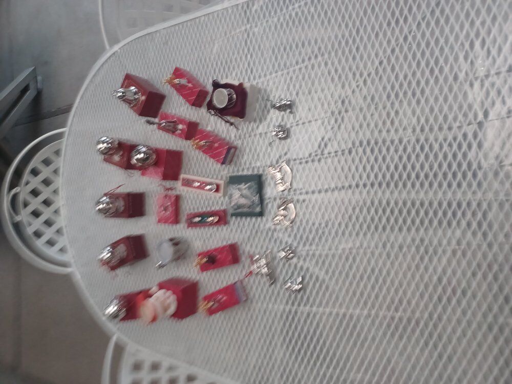 Gorham sterling silver items, Reed and Barton silversmith items, Towel and Lunt silversmiths, Wedgewood figureins and ornaments, Fitz and Floyd figures, and Nativity shed and figures by other artists. Make an offer and any reasonable offer will be considered. Thanks for looking and have a great day !!!!!!!