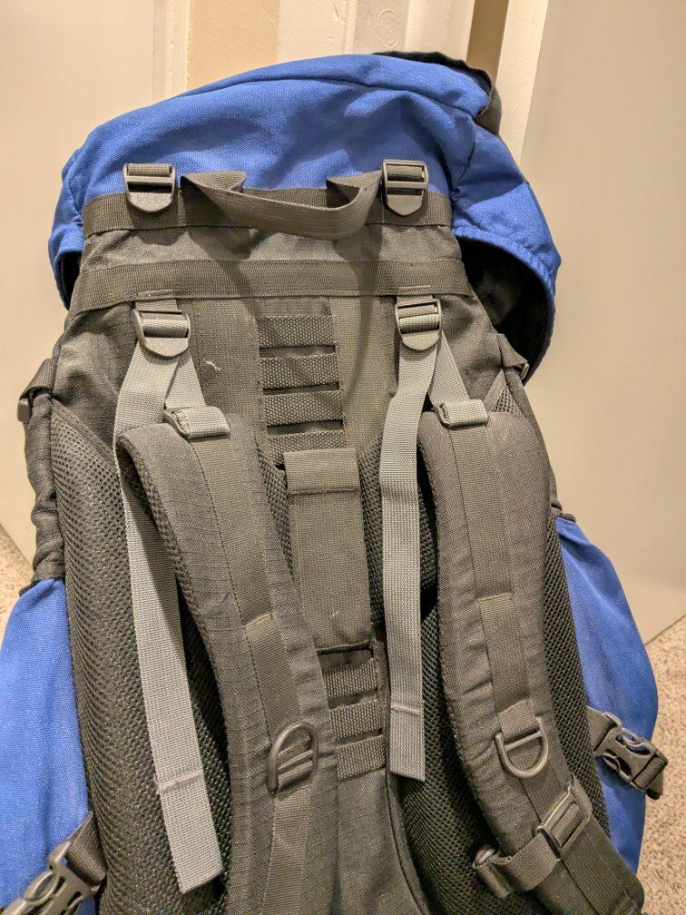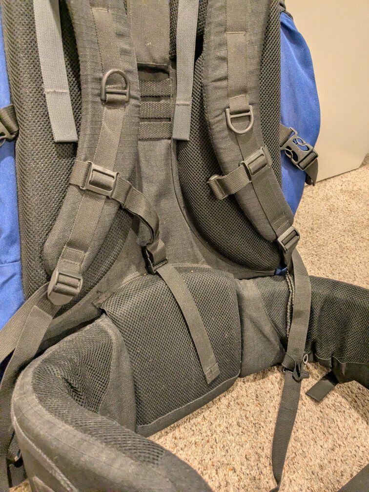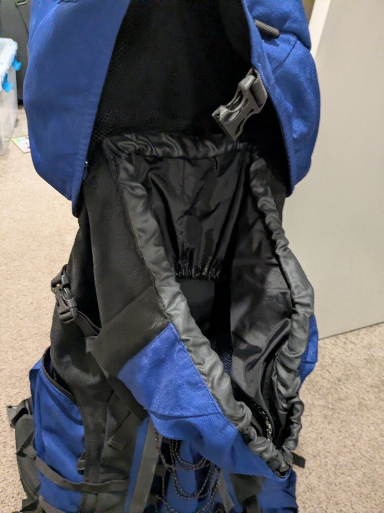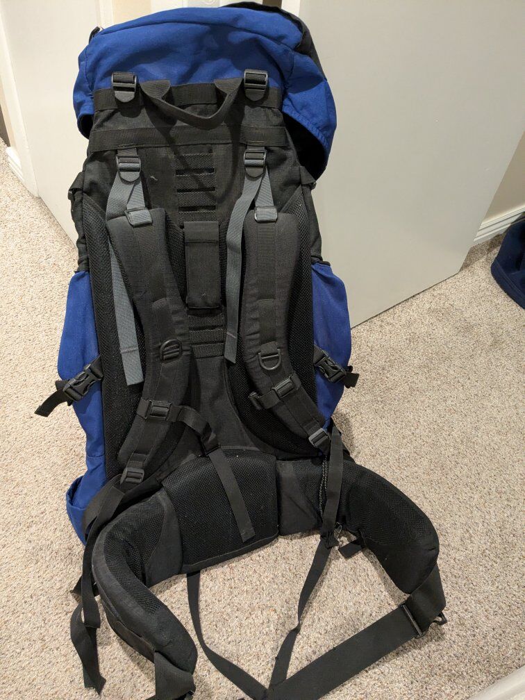 VenmoThis blue pack has lots of space and with many adjustments. Has been used for a few trips, but still in good condition. See photos for a strap that was chewed by squirrels. Ready for many more adventures. We just don't use it anymore. Cash or venmo. Local pickup only.