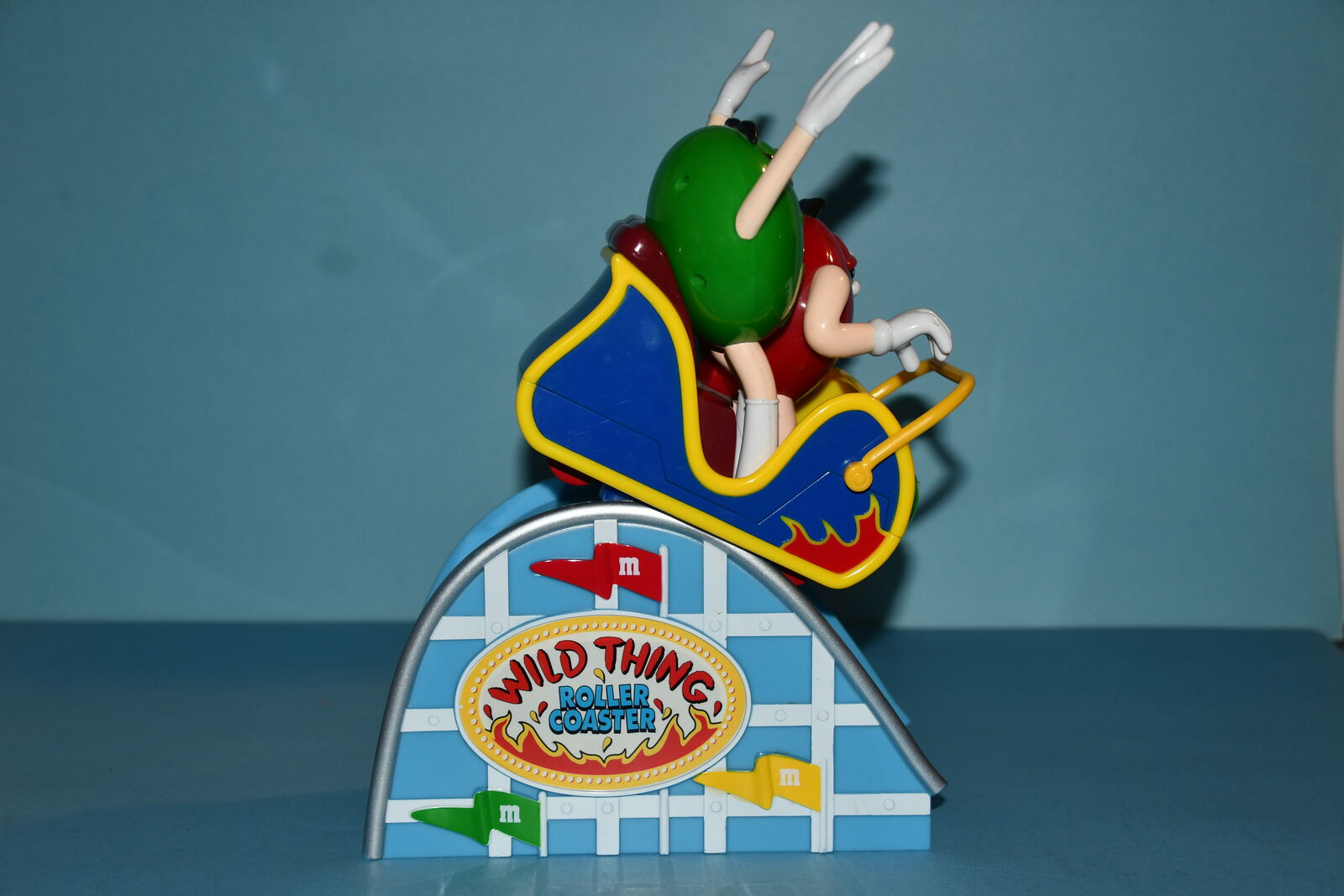 This M&M "WILD RIDE" ROLLER COASTER DISPENSER is about 11". It is CLEAN! Our home is smoke free. Questions??? Please ask. We are located in Plain City. Cash only please.