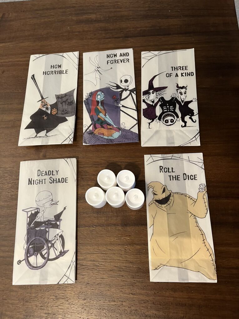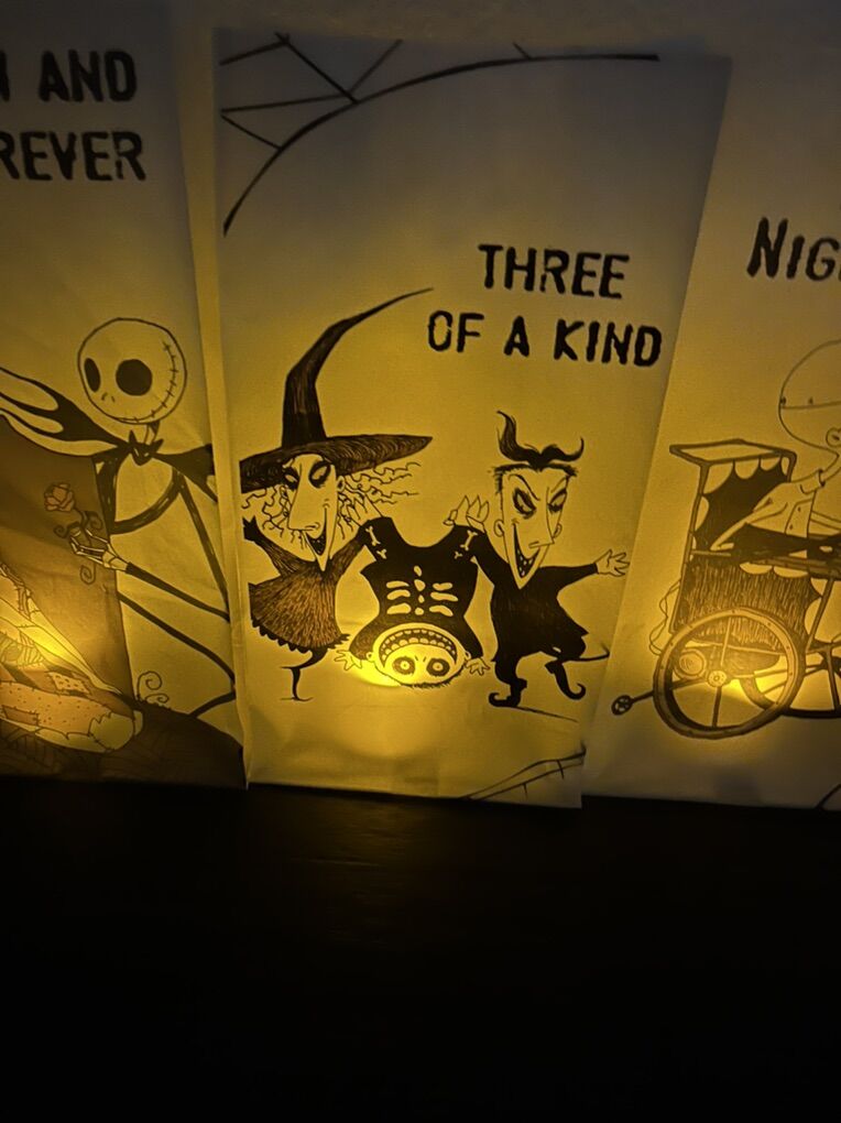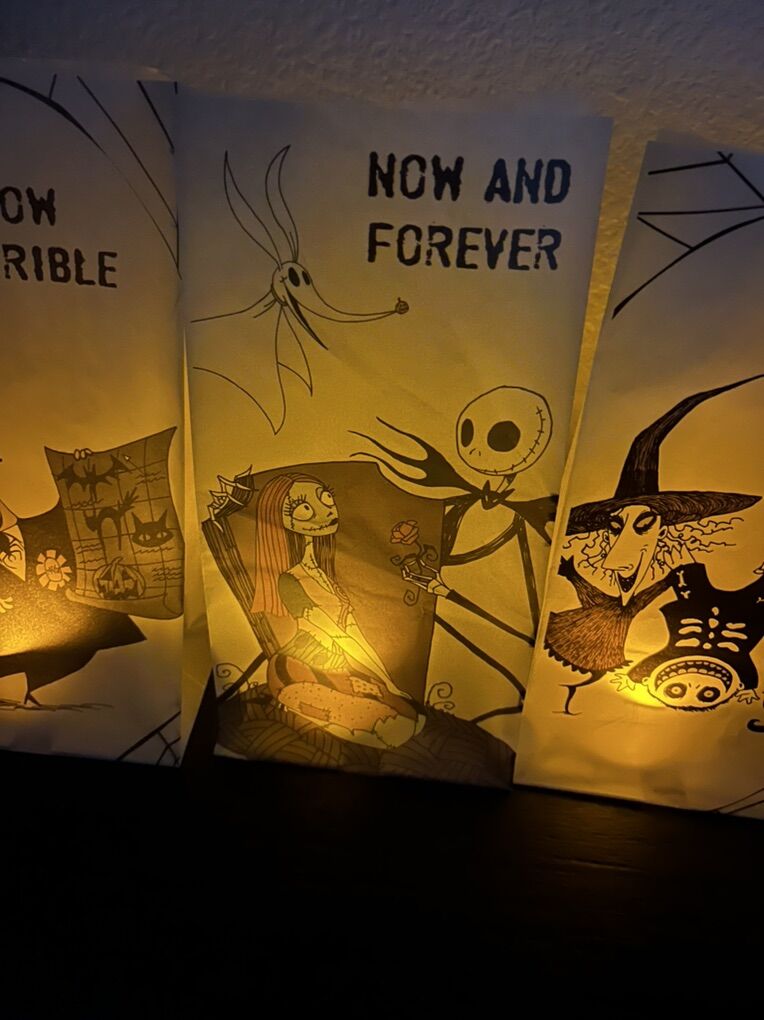 Venmo5 decorative paper bag luminaries depicting your favorite characters from Nightmare Before Christmas