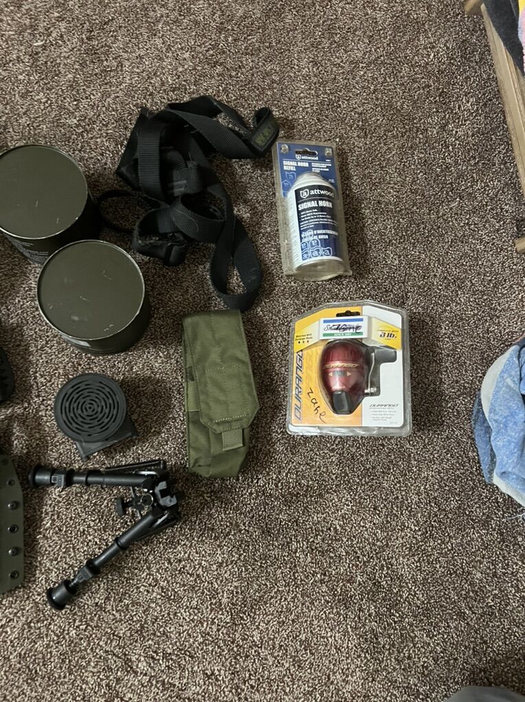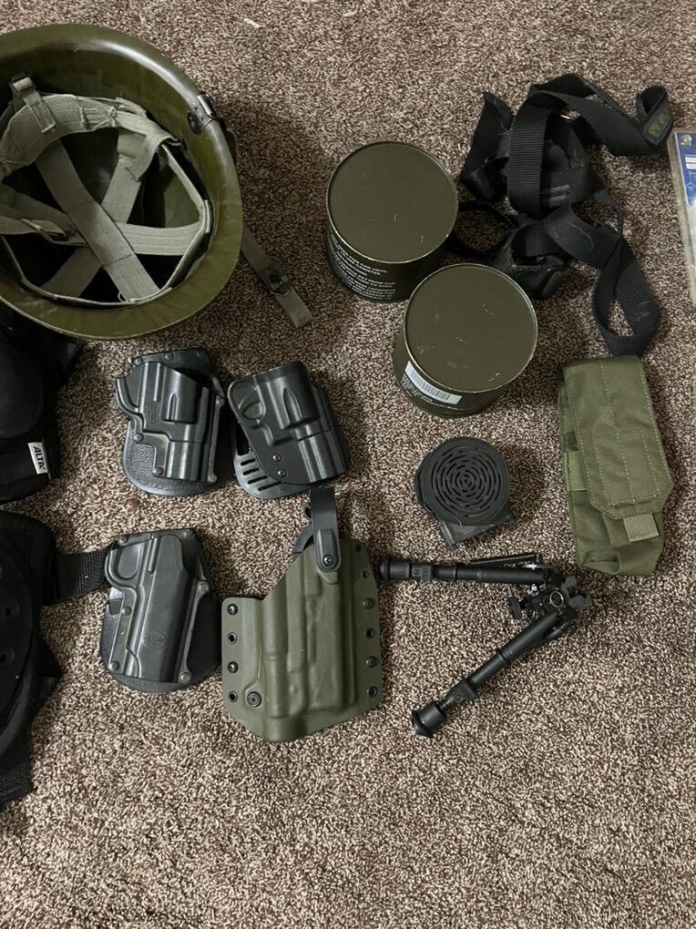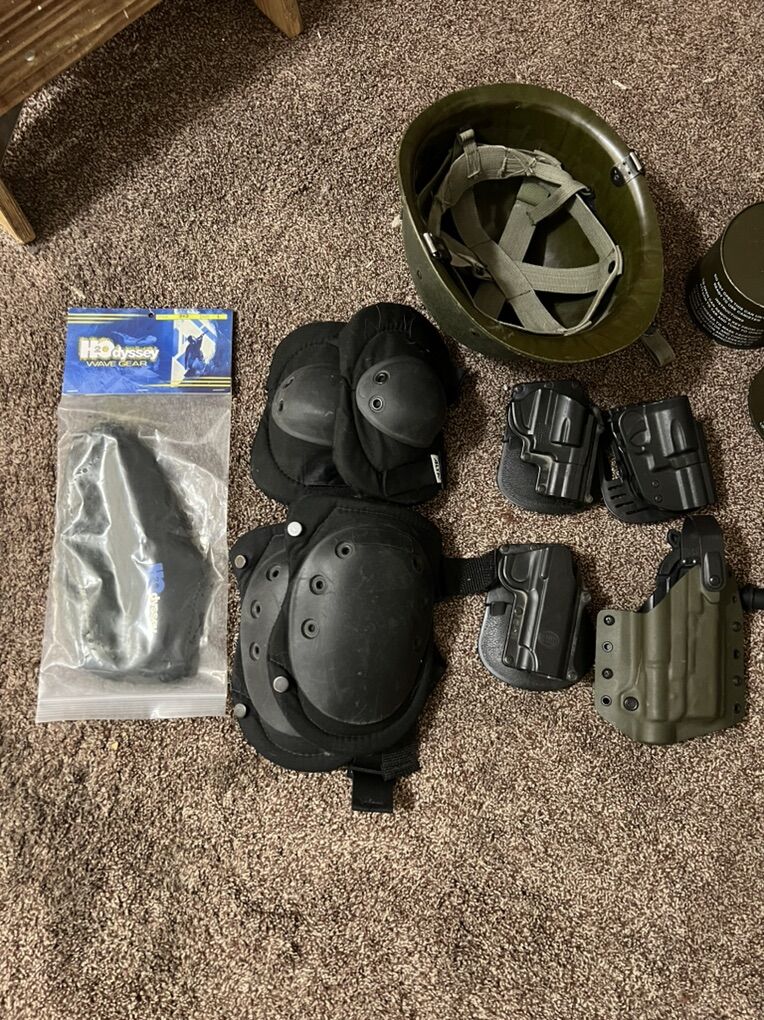 VenmoA bunch of stuff to get rid of. Will sell you what you want. Have 4 holsters, 2 are for a 1911 and the other two are a Taurus .38 revolver. Have an old Iraqi helmet, 2 gas mask cartridges never been open, AR mag pouch, bi-pod, tactical elbow and knees pads, old school military gas mask voice amplifier (not sure if it still works, used to), rifle sling, signal horn refill, Shakespeare fishing reel that matches with Durango rods, and finally a pair of H2Odyssey neoprene snorkeling fin socks and then a bunch of military patches, ribbons, and such. Let me know what you want or what you’re interested in.