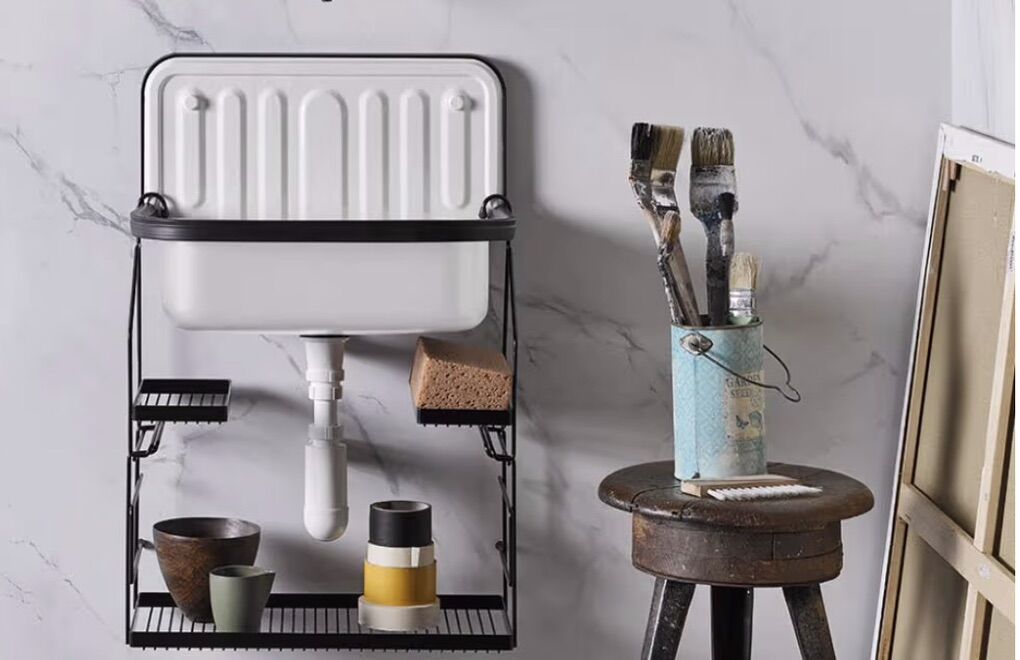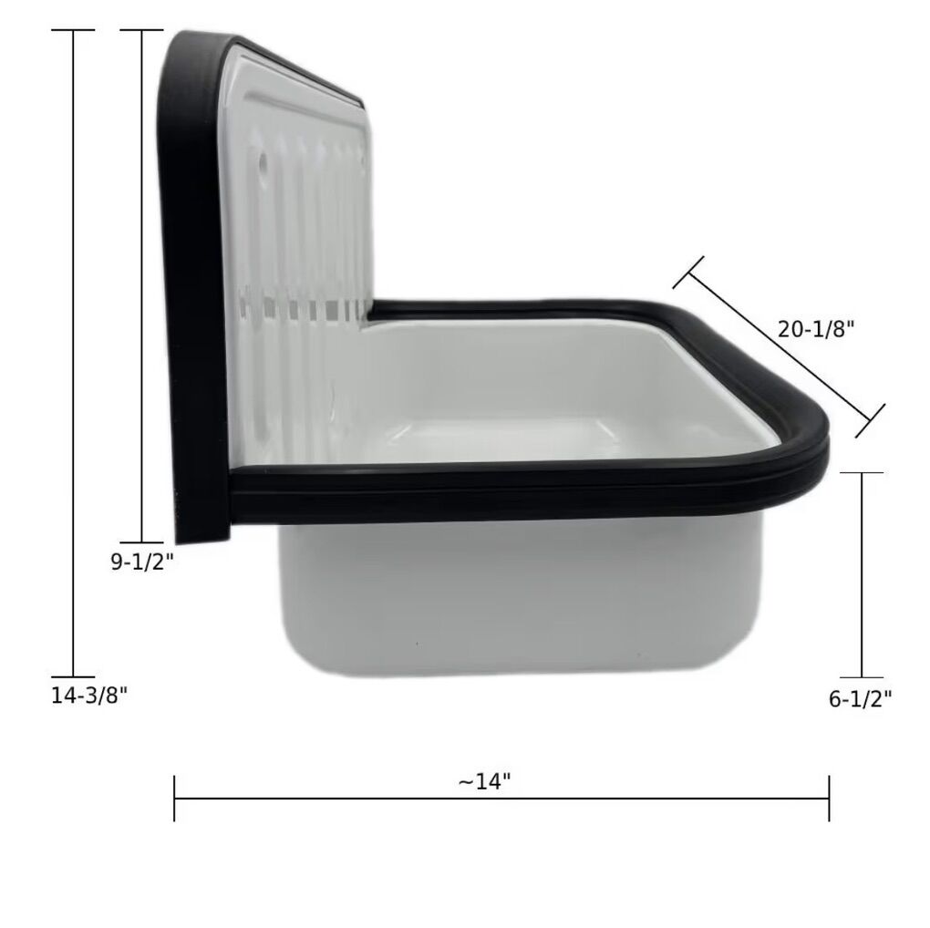 VenmoBucket Sink and Drain Bundle, Small Service Utility Sink with Overflow Assembly, Bottle Trap Drain, Glazed White Steel Finish, Black Trim