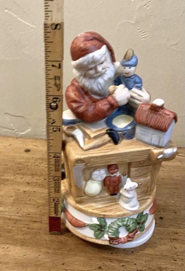 NEW MUSIC BOX - HOMCO VINTAGE Porcelain SANTA IN HIS WORKSHOP- Spins to Jingle Bells - Music Box - See Photos. In original Box this music box winds up with the rotating stand and plays Jingle Bells while it turns. Absolutely perfect!