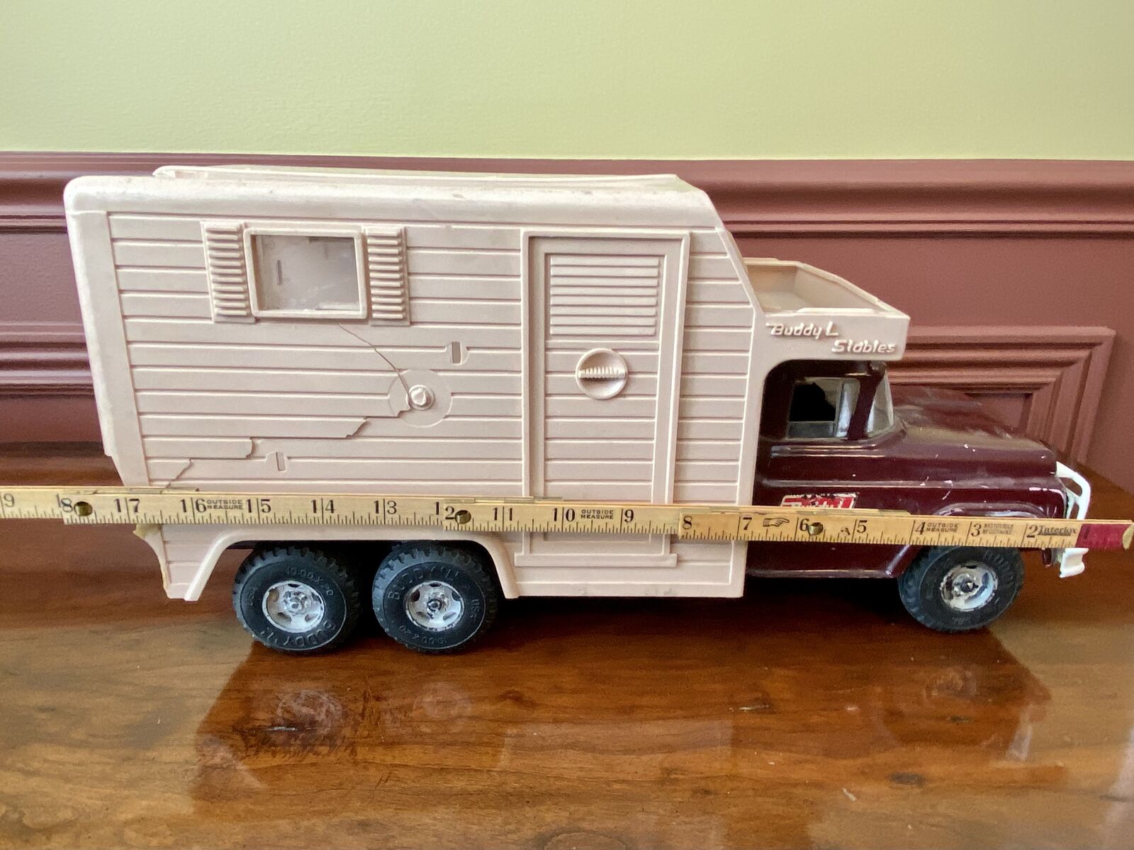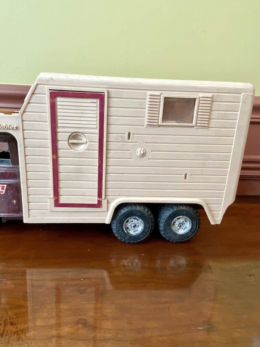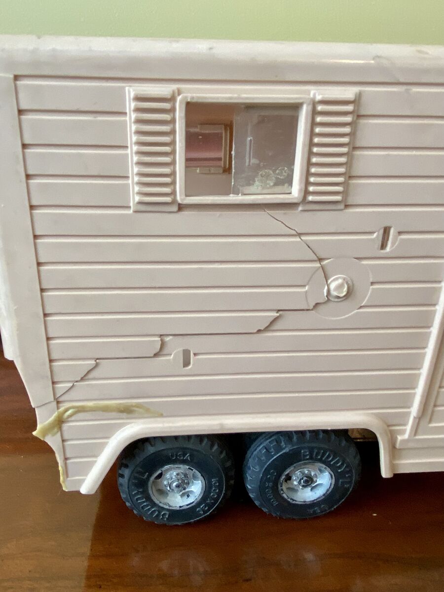 RARE- Buddy L Stables Vintage(1960s) Ford Horse Trailer - Collectable Toy Truck + Bonus - C PIX. This piece of history has been in our family for decades. I wanted to fix it up, search for any missing piece. Unfortunately I don't think that's going to happen. The Bonus I am including is other Buddy L Stables pieces (red tailgate and Ford Tire) to fit different toys. You can do anything that you would like with them.