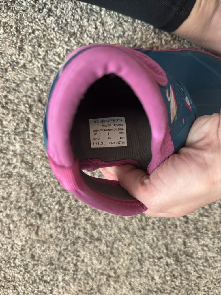 VenmoThese boots are in fantastic condition, they are girl size 9 kid boots, we have always bought our kids the muck boots but we loooove these even more and are easier to put on and take off themselves extremely warm and waterproof! have great tread and grip. These are amazing durable boots. Only pair your kid will need for all seasons!