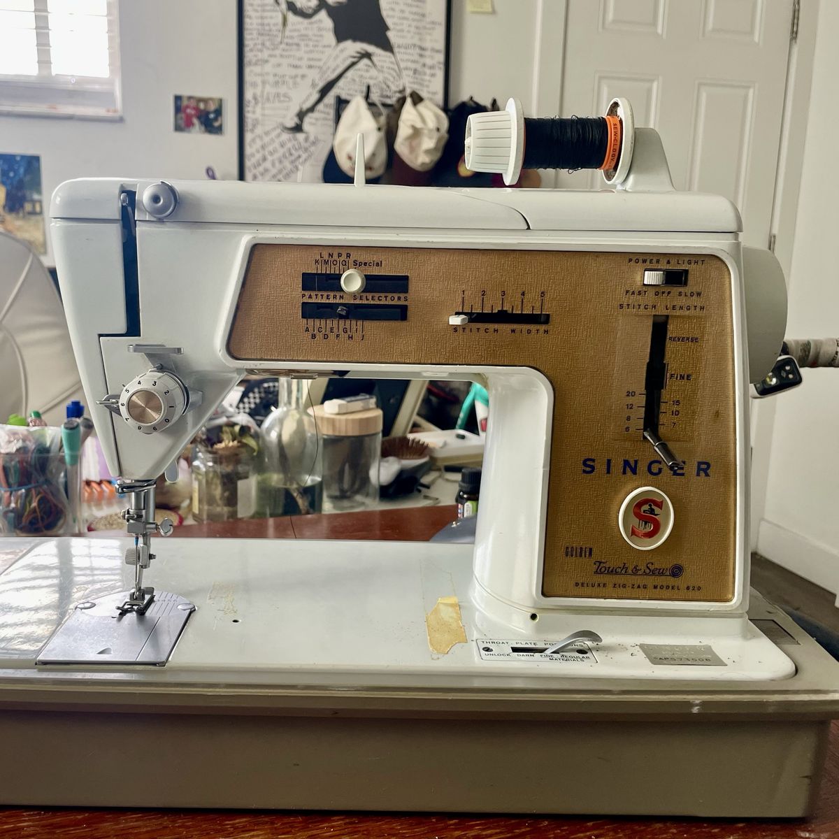 This is a beautiful Made in U.S.A. Singer that still has its original carrying case, manual, buttonholer, and all the feet and attachments for zig zag Made in 1966