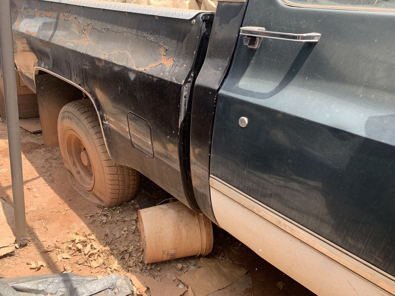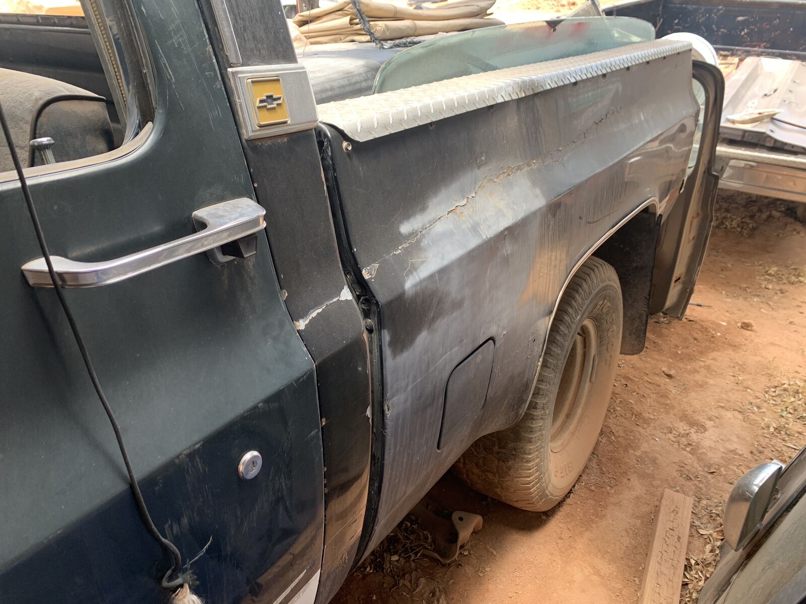 VenmoNeed a winter project? Can floor is in fanatastic shape. There has been a frame repair on the front driver side, and there needs some repair on the left rear shock mount area of the frame and a new front crossmember or for the crack to be welded up. The shortbed squarebody trucks are getting harder to find. This truck a lot of potential. I'm not really sure on the history of it, but the bottoms of the front fenders have been cut, so I'm sure at one time it had large tires on it. No motor, no transmission (Inhave a TH350 that I'll throw in, but consider it a core, because I don't know the hid of it either, and it has been sitting outside). No transfercase. Does have 3.73 ratio axles under it. No tailgate, and the parts in the bed will be removed - for other projects. Title is in my name. $1,700.