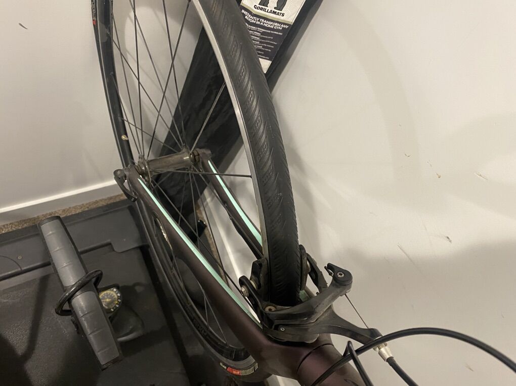 2019 womens 15 specialized road bike womens size 51 bike trainer additional $50 model ISO 4210-2 2014-R installed saddle with more cushion front tire is flat $300 has been an incredible bike for a beginner like me, used it to commute to school, and after graduation have only used it indoors on the bike trainer, but I’m upgrading to a stationary spin bike. I have all the correct hardware if you don’t want it on the trainer.