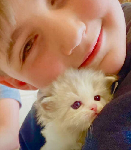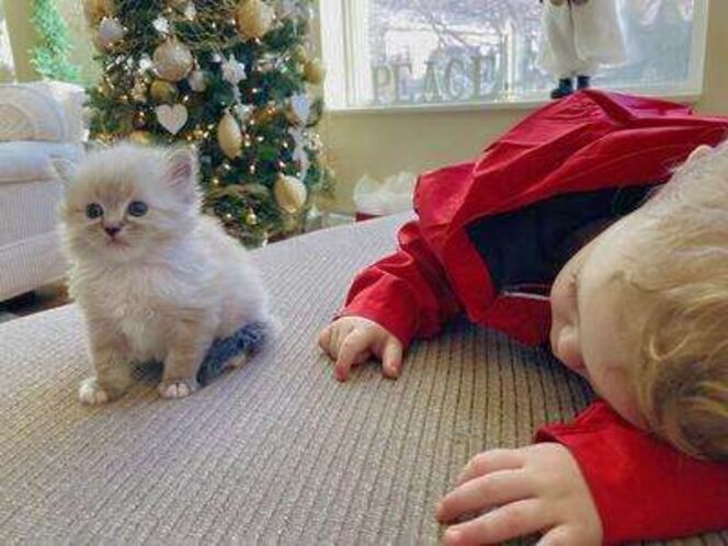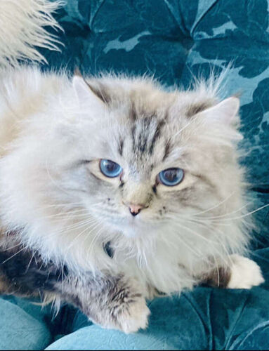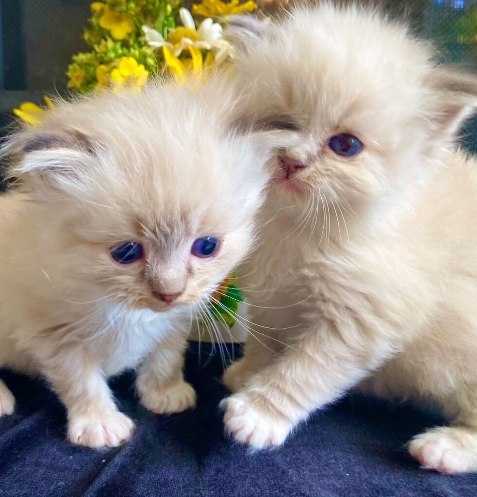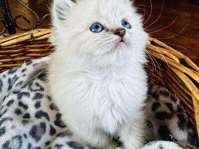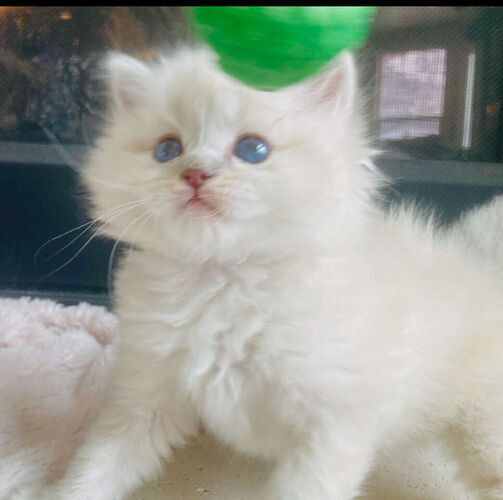 Our Pevency is nearly 3 years old (pictured 1st-6th). He's (He's a Purebred, Blue Mitted Lynx with Mink Fur--both of his parents are TICA Registered & Papered and he produces STUNNING kittens w/ super fluffy coats with BEAUTIFUL BRILLIANT BLUE EYES Always with th famous loyal PUPPY DOG FLOP on your lap temperament (all of what Ragdolls are known for).
