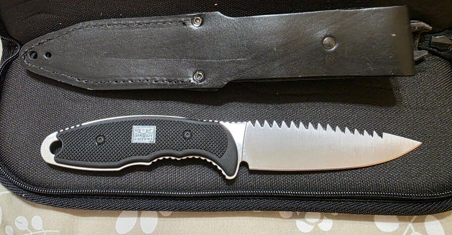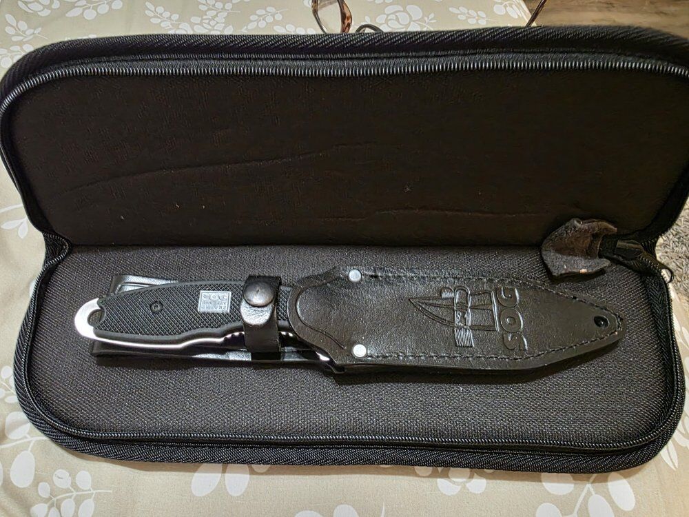 VenmoSog Team Leader Survivor: AUS-8 Stainless steel 5" blade, 10.25" overall, textured zytel handle. I don't think the blade has been used. You don't see these too often. One of the few Sog's made in the U.S. Cash only, text only and FIRM on price. Thanks!