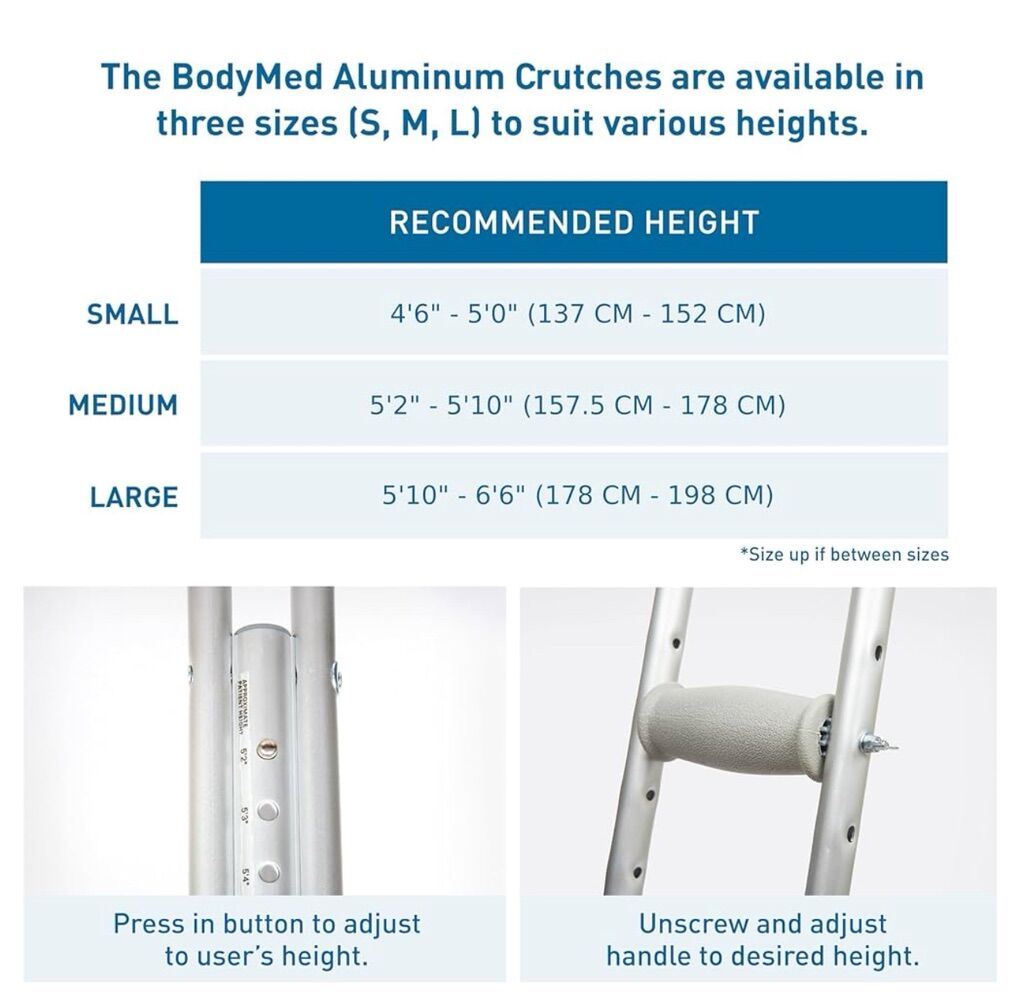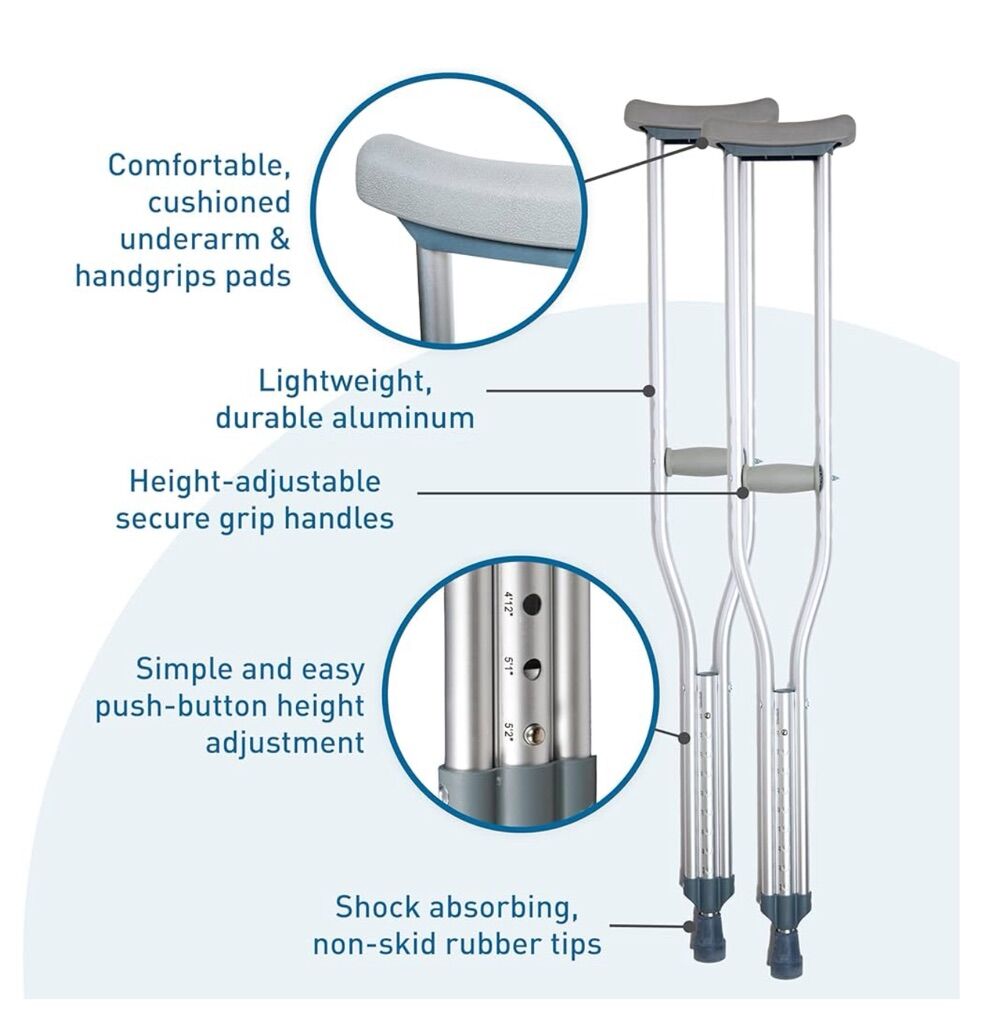 VenmoLightweight aluminum crutches, height‑adjustable for users 5'10 to 6’6”. Comfortable underarm pads and hand grips. Strong yet lightweight design Adjustable height for adults/teens Non‑slip rubber tips for safety Brand new – never used