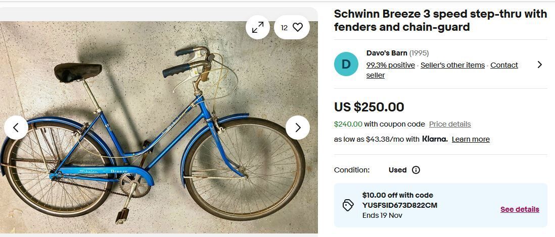 This Vintage Schwinn was never ridden outside. it was mounted on an indoor exercise stand.
