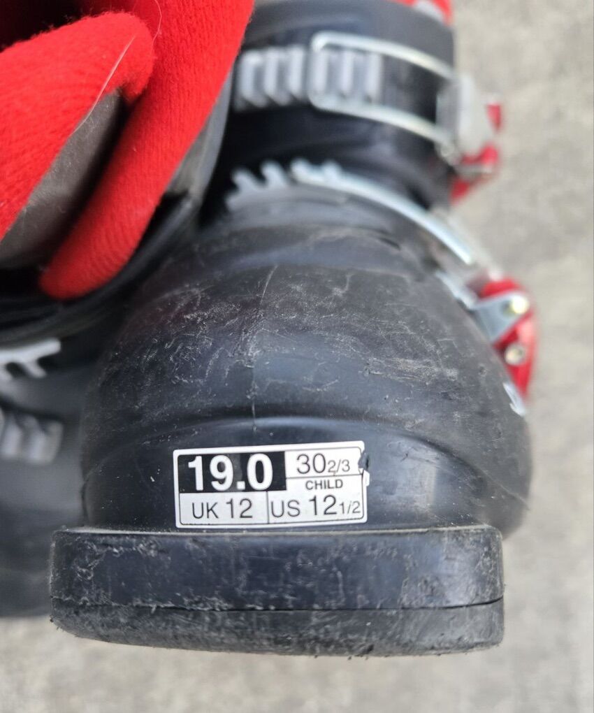 VenmoKids JR Salomon Performa T2 downhill ski boots. Sole length is 240mm. Mondo Point 19 which is a kids 12-12.5 shoe size. Great ski boots to use this ski season. Text please.