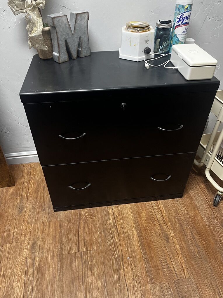 Selling 4 salon stations and 1 matching storage cabinet — perfect for upgrading your salon or starting a new one!