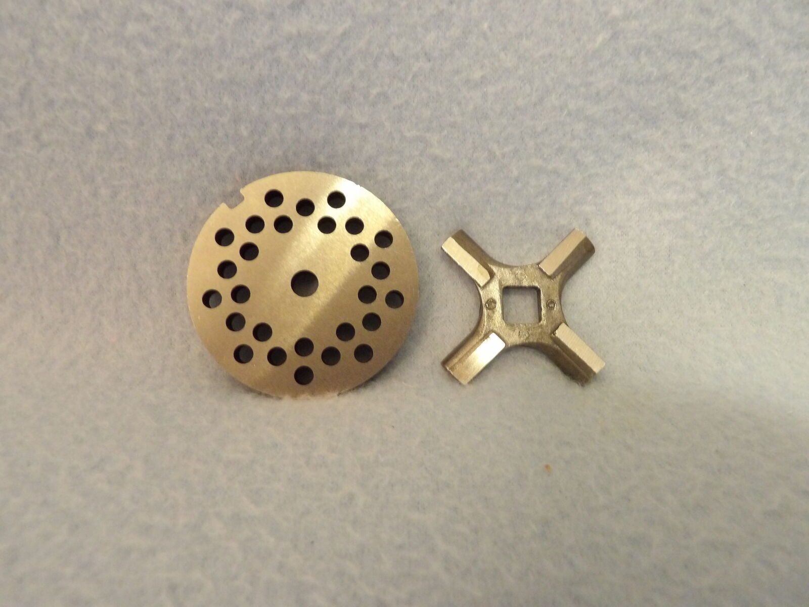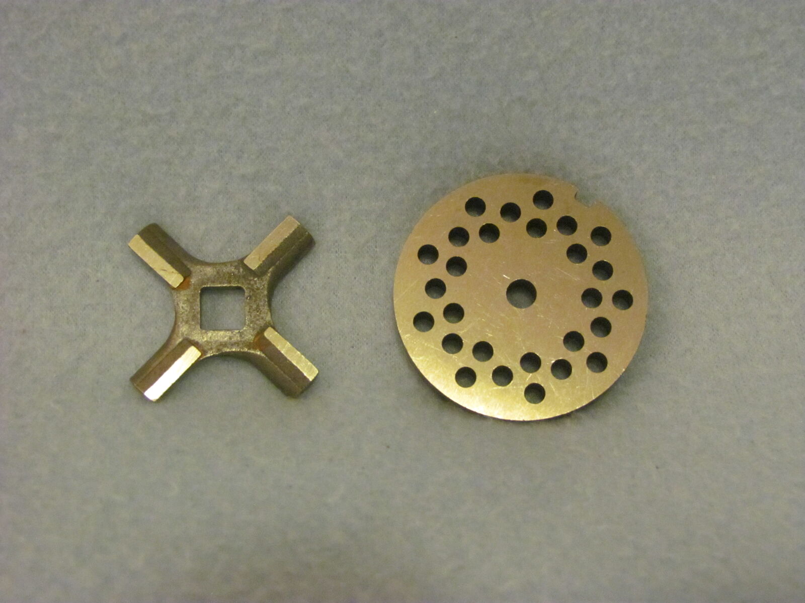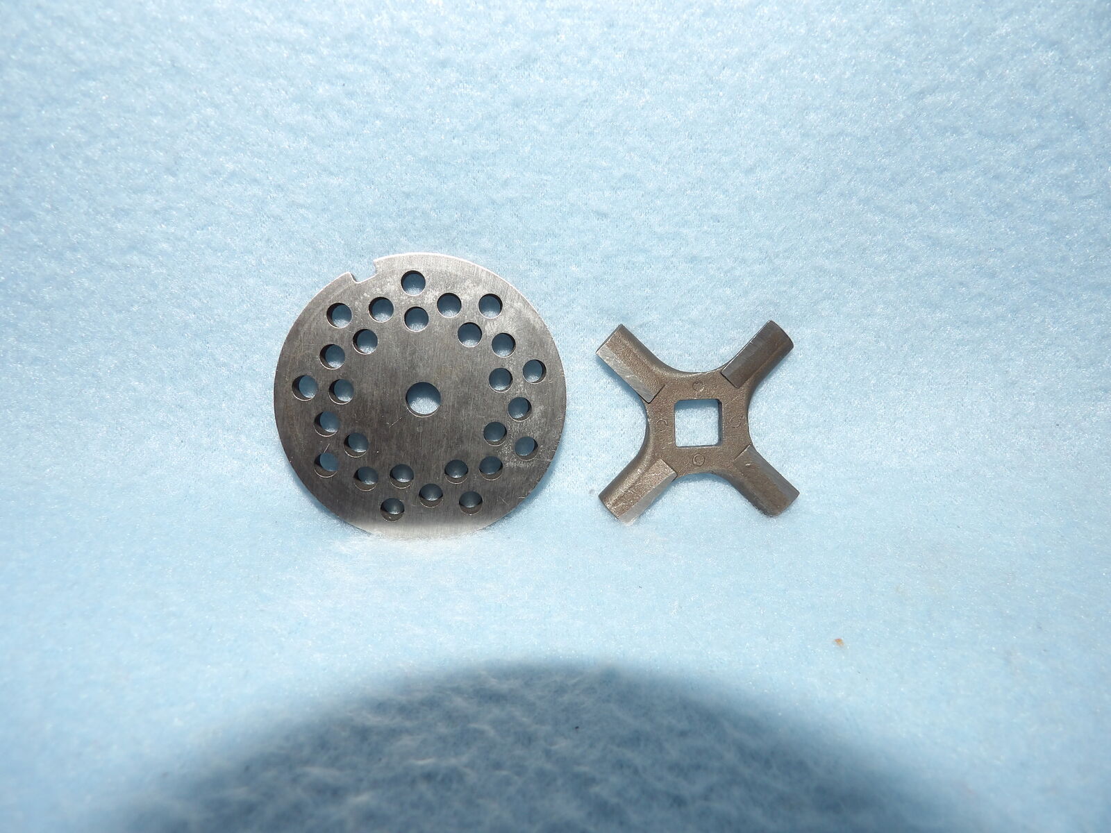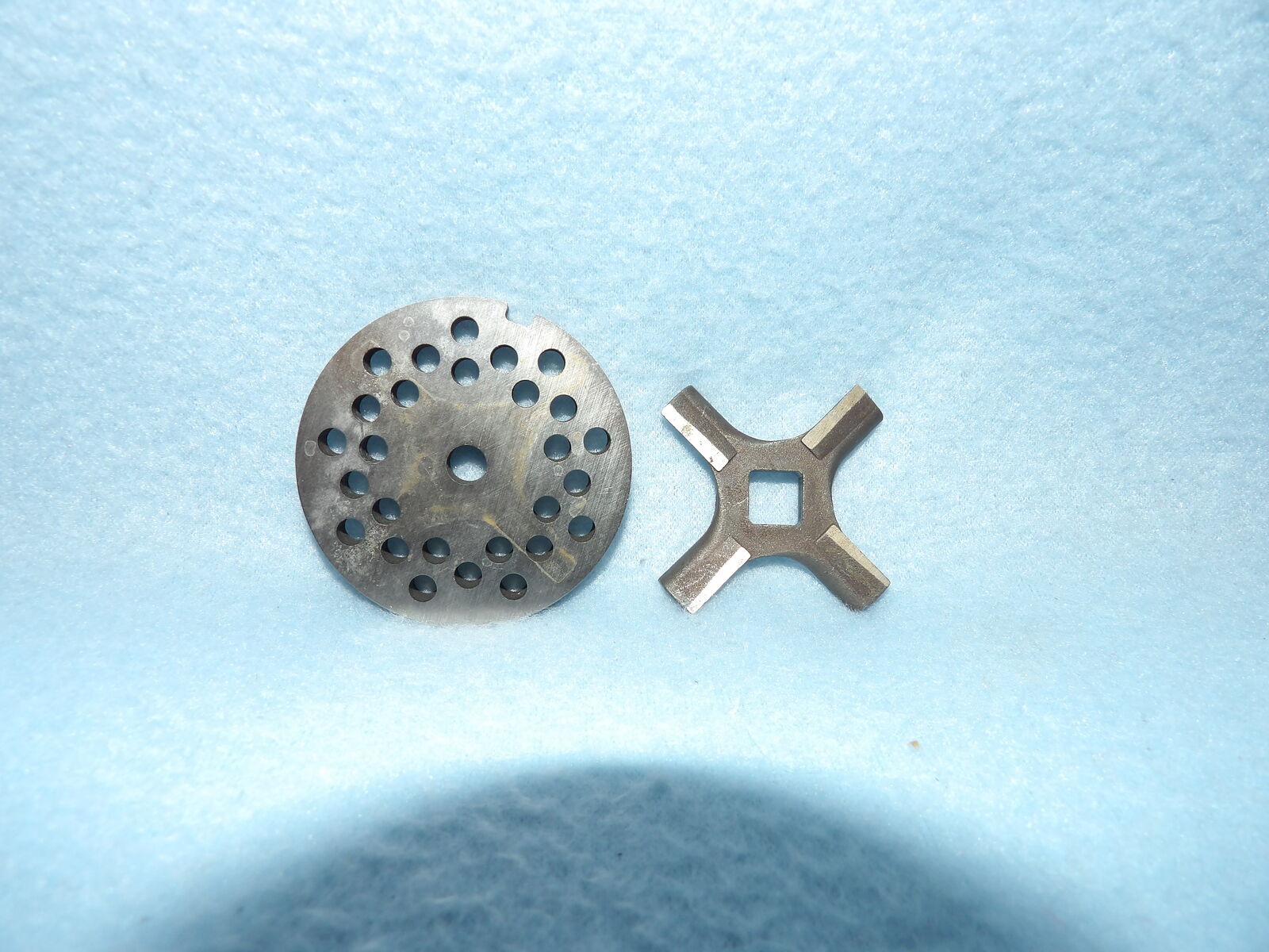 $45 Metal Meat Grinder Disc and “X” Piece – The circle piece appears new. The "X" piece shows a small amount of rust, but is in otherwise good pre-owned condition - please see photos.
