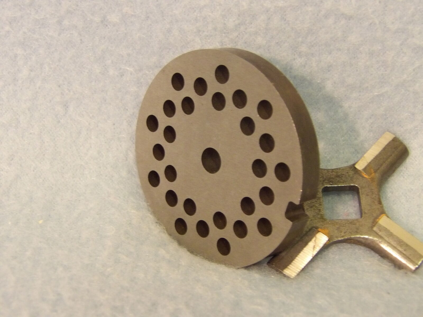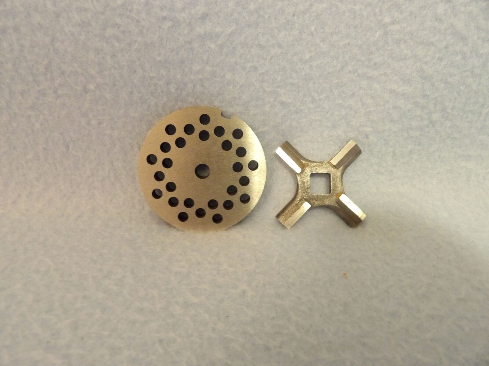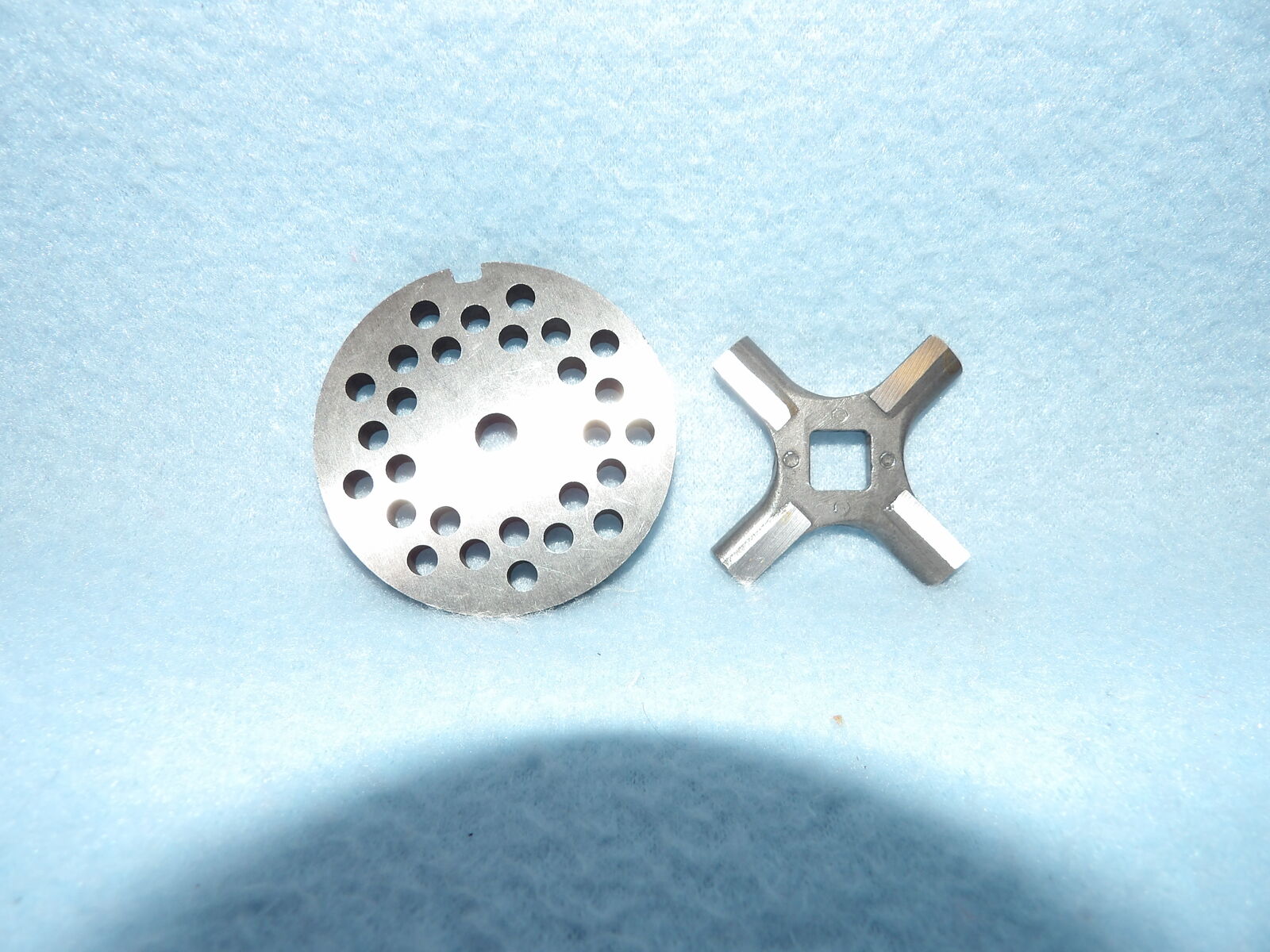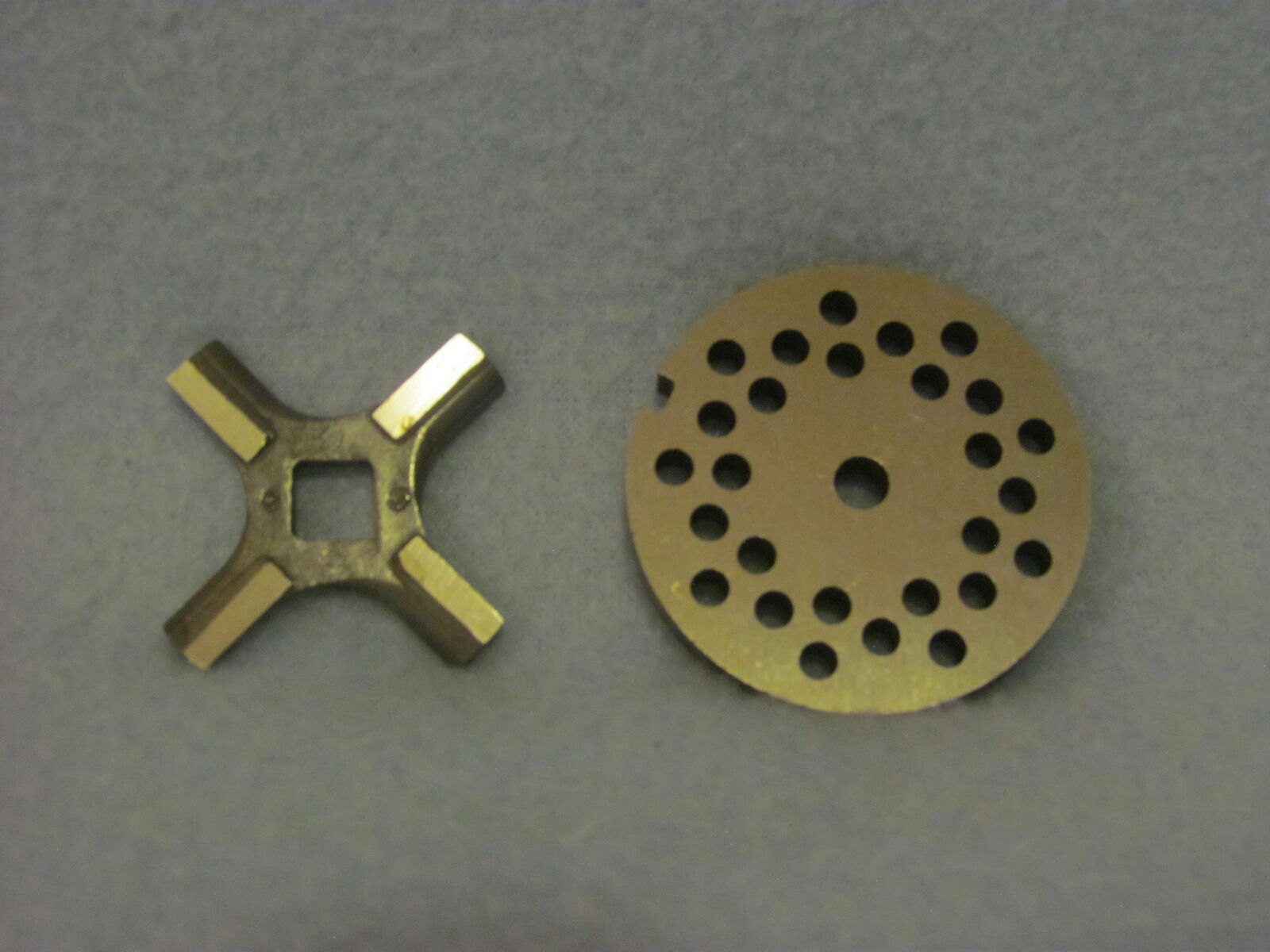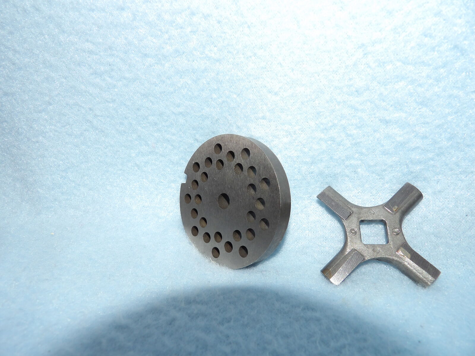 $45 Metal Meat Grinder Disc and “X” Piece – The circle piece appears new. The "X" piece shows a small amount of rust, but is in otherwise good pre-owned condition - please see photos.