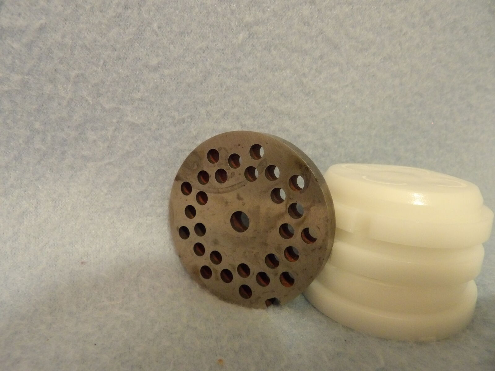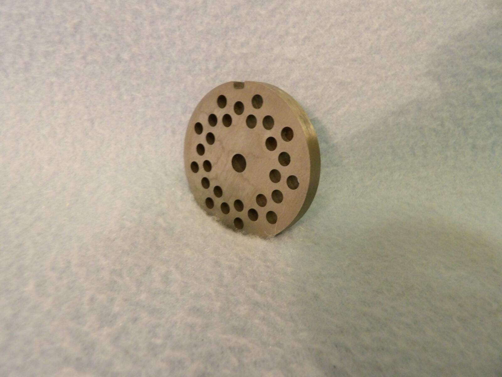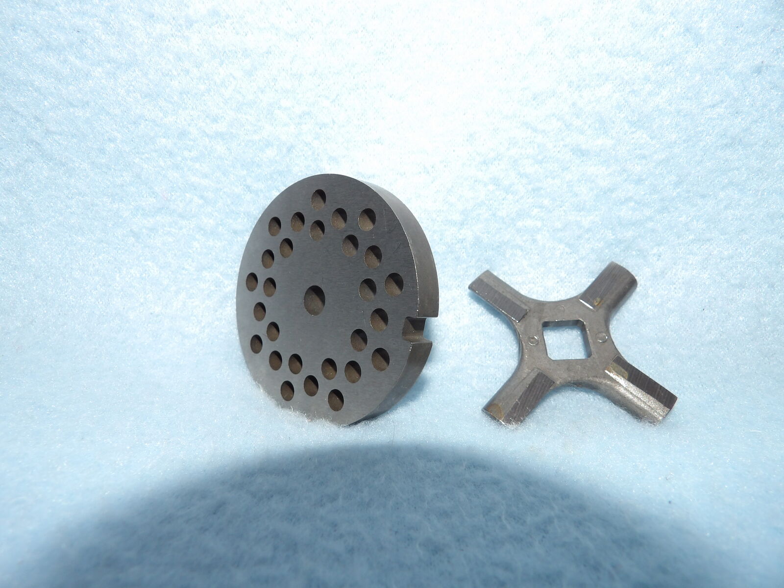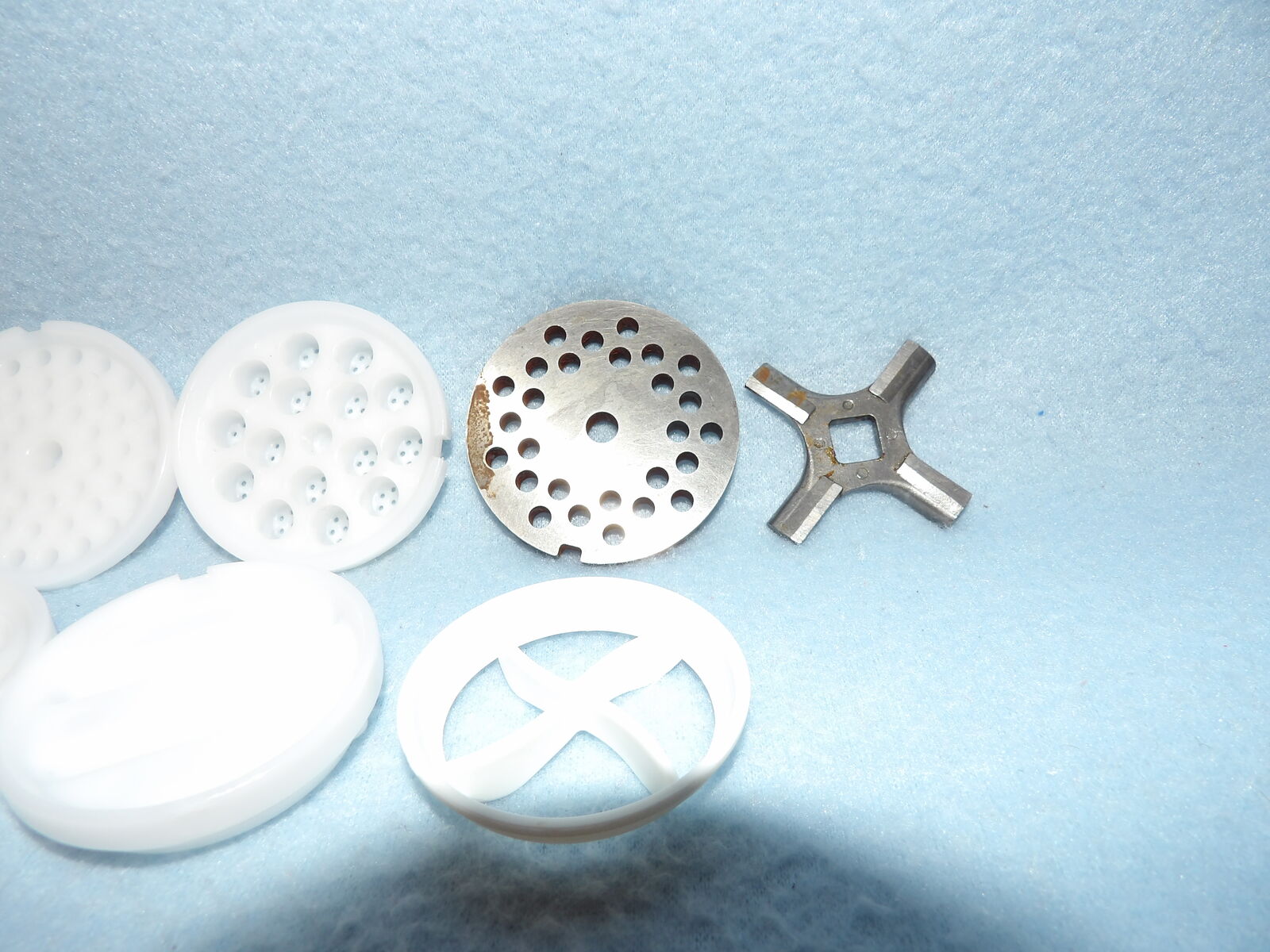 $45 Metal Meat Grinder Disc and “X” Piece – The circle piece appears new. The "X" piece shows a small amount of rust, but is in otherwise good pre-owned condition - please see photos.