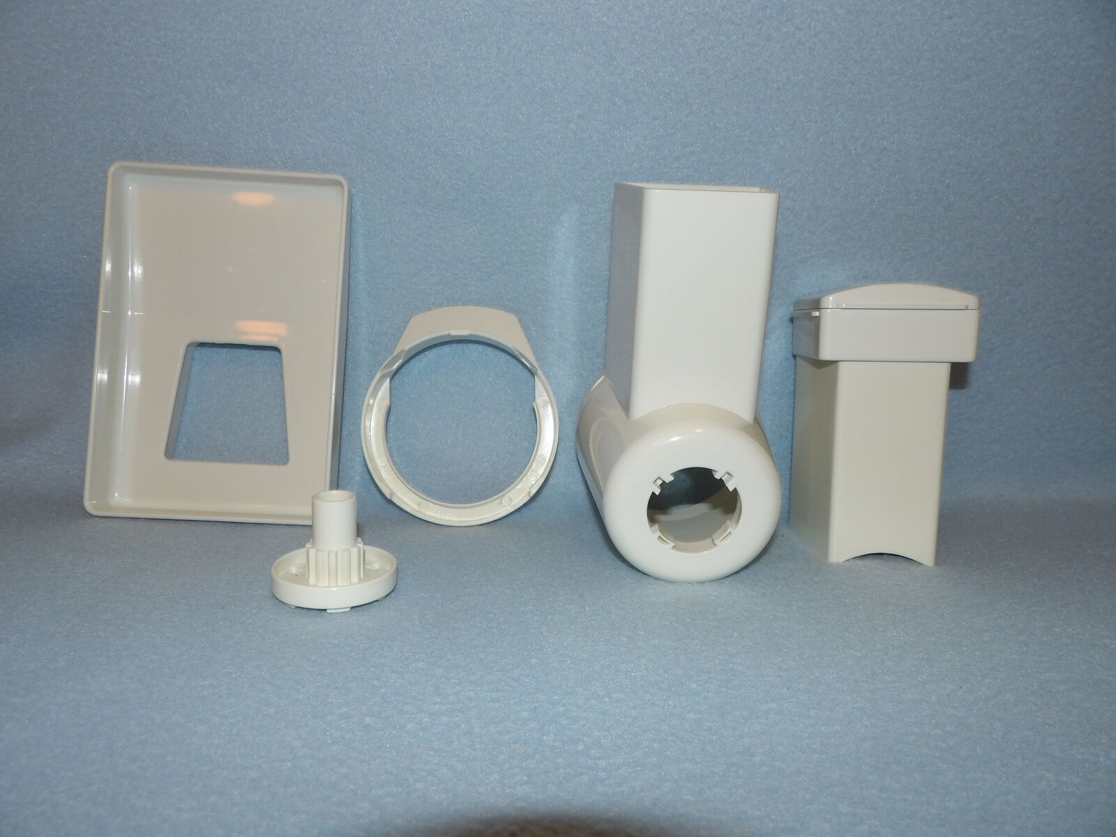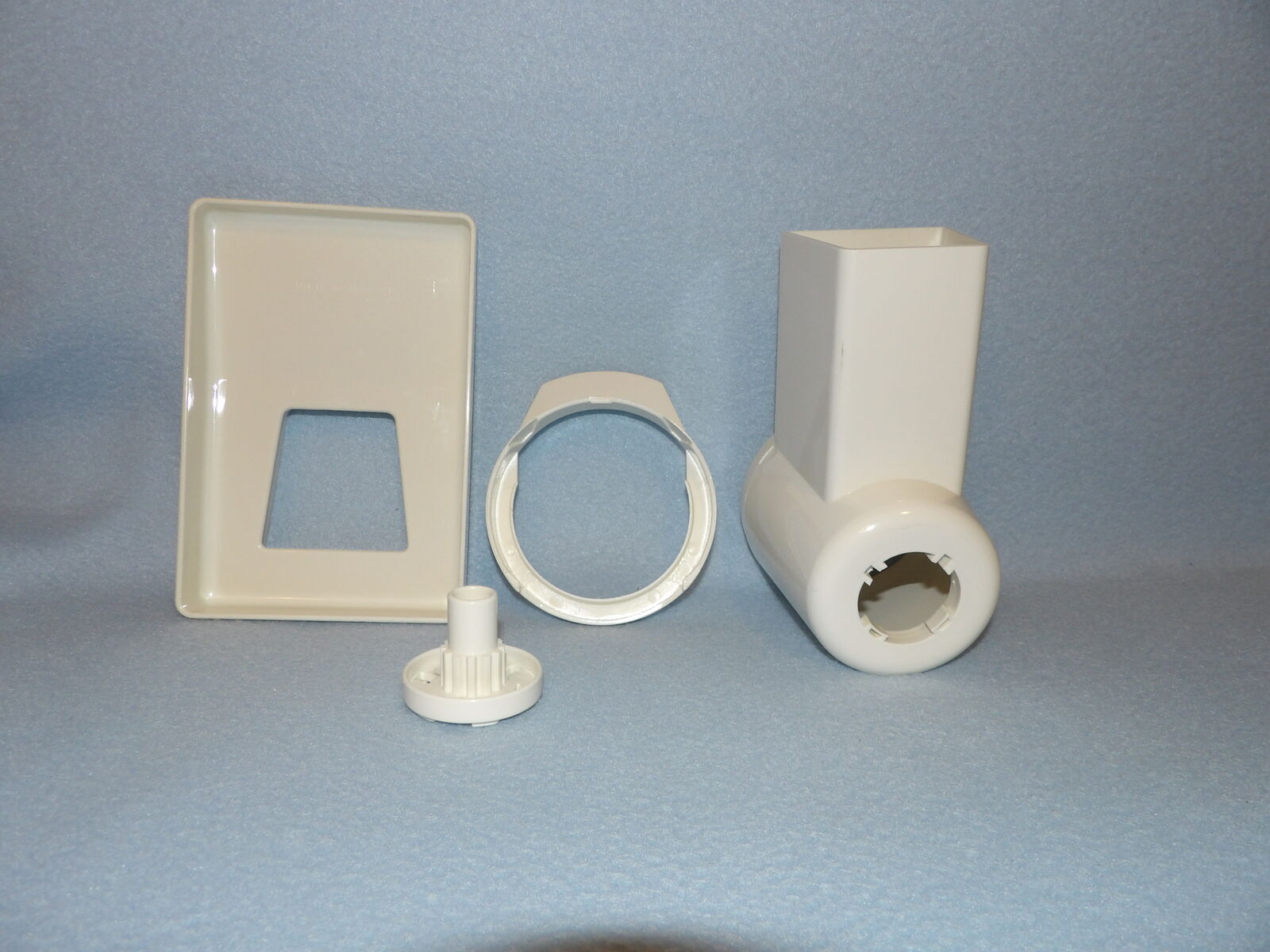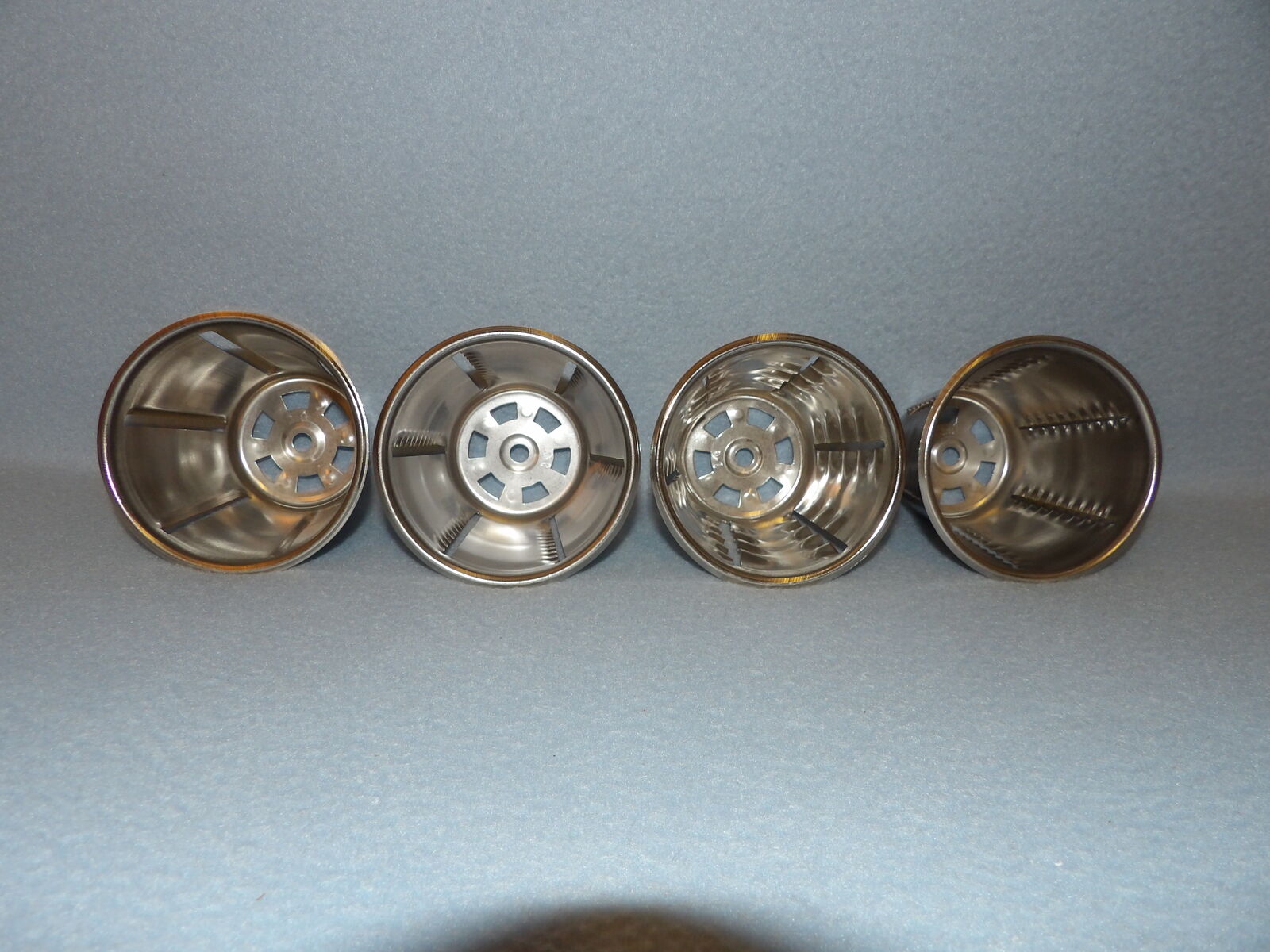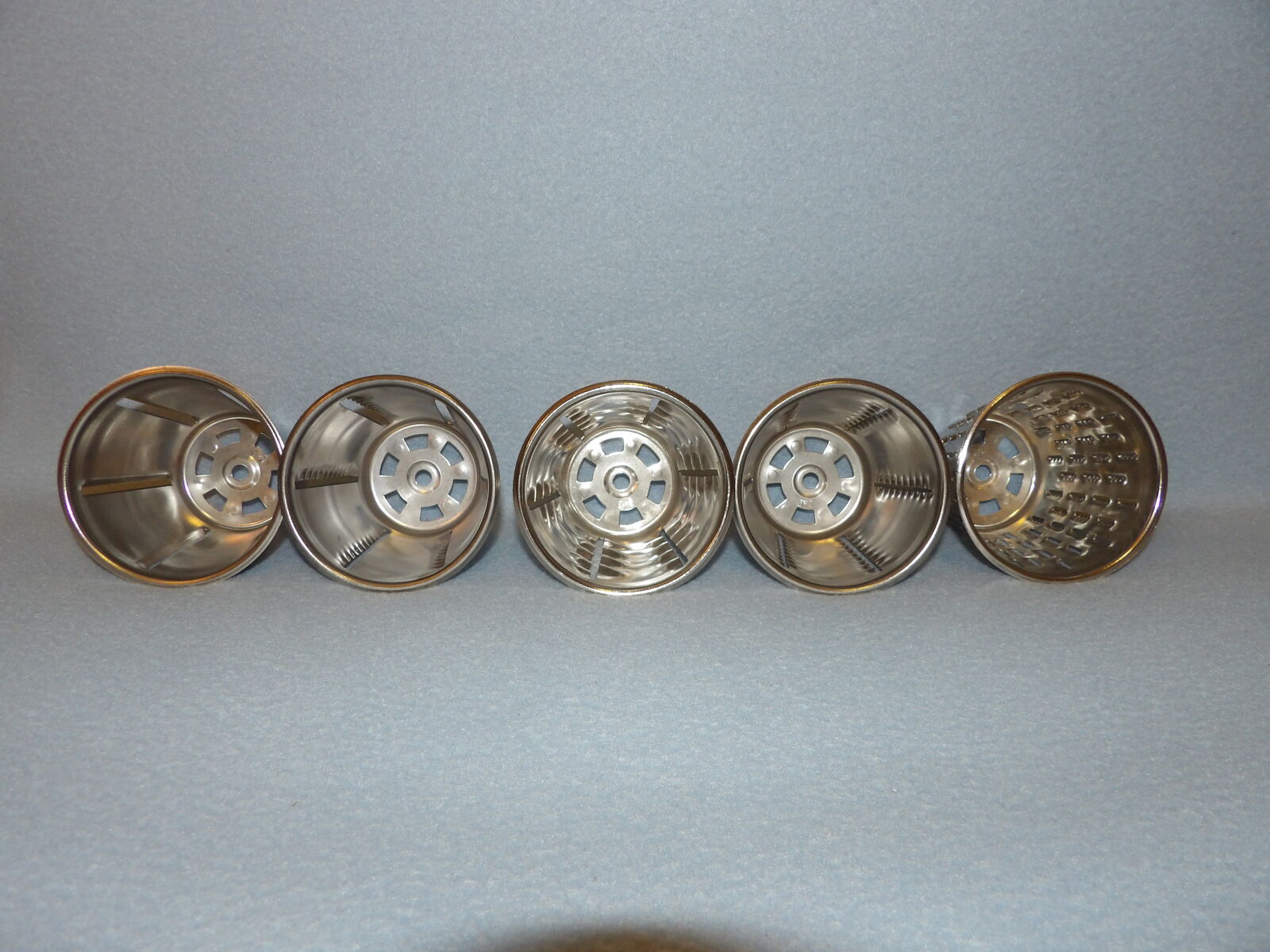 $80 Vegetable Shaft, “O” Cover, Attachment Disk, Food Tray, & 4 Metal Cones (Straight Slicer, Crinkle Cut Slicer, Julien, & Large Grate)