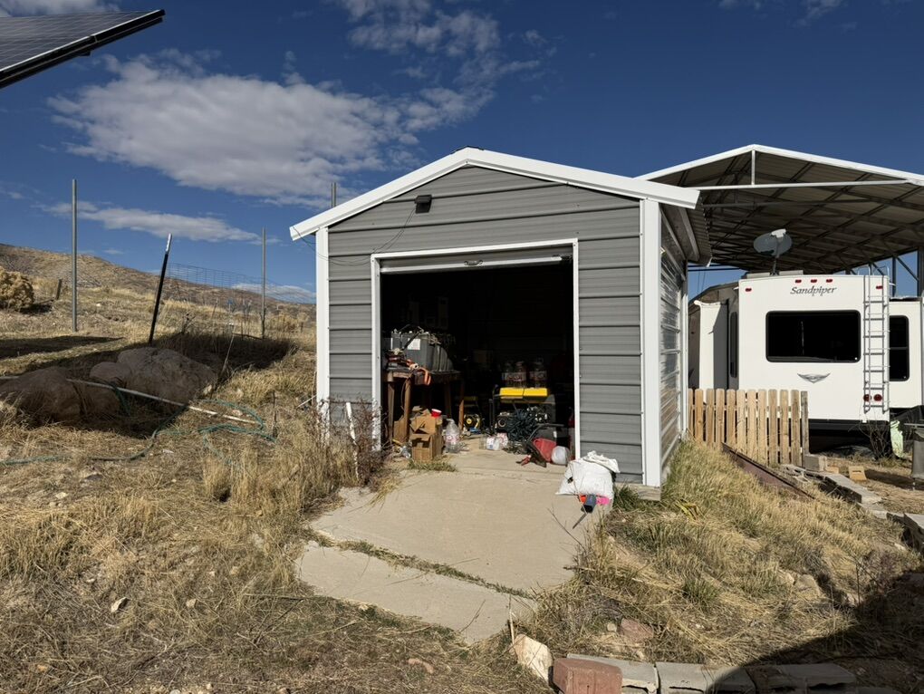 MLS#2123141 Utahrealestate.com/2123141 Escape to your own slice of heaven in the Oaker Hills subdivision, just 20 minutes north of Fairview and 30 minutes south of Spanish Fork. This 5.17-acre lot sits on a gentle hillside and offers breathtaking valley views in every direction. This property is ready for you to move right in and start living your off-grid dream! This sale INCLUDES a 2013 RV travel trailer under a covered carport, plus two metal buildings-one for storage and another housing the power system. With seven large solar panels, eight batteries, and a generator included, you'll have reliable power year-round. Enjoy the peace of mind of having your own well with great water, .75 acre-feet of water rights, a septic tank, and four water spigots already in place. Roads are maintained year-round, giving you easy access while still enjoying privacy and wide-open space with no close neighbors. Whether you're looking for a full-time off-grid lifestyle or the perfect weekend getaway, this property has it all-views, water, power, and comfort. You won't find a better deal than this! Included in Sale: Generator Metal Building 12'x10' South Metal Building 20'x10' Trailer Carport 30'x45' Attachment on trailer (west side of lot) 12'x10' 5th Wheel Trailer: 2013 RTRA Sandpiper Includes Utah Division of Water Rights #51-6994, an #51-8207