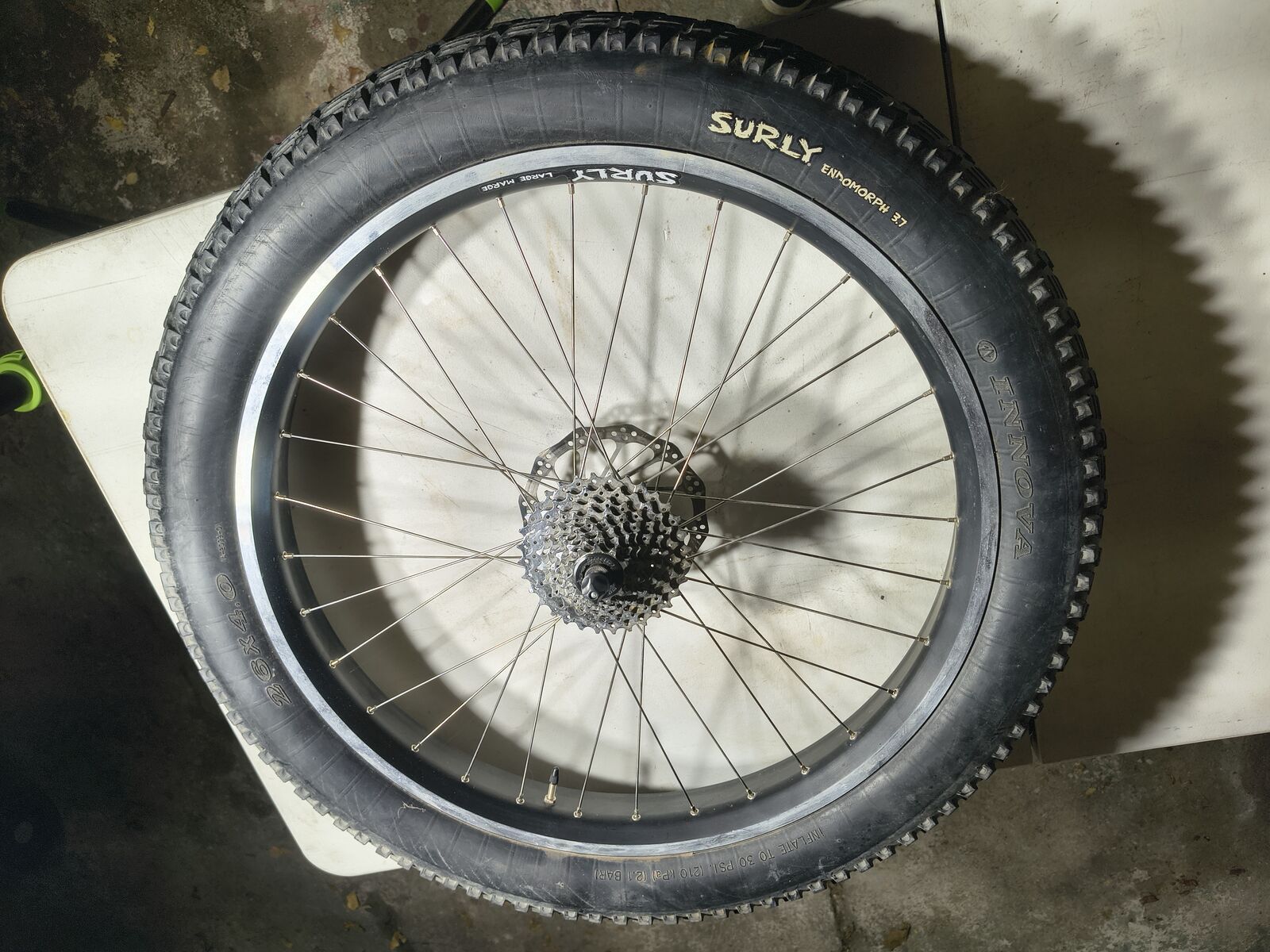 1 offset Large Marge with 135x10mm thru axle Saint hub for Pugsley $50