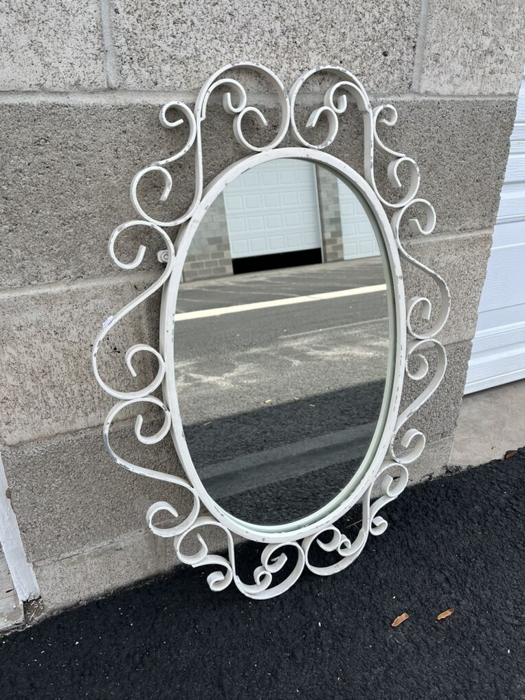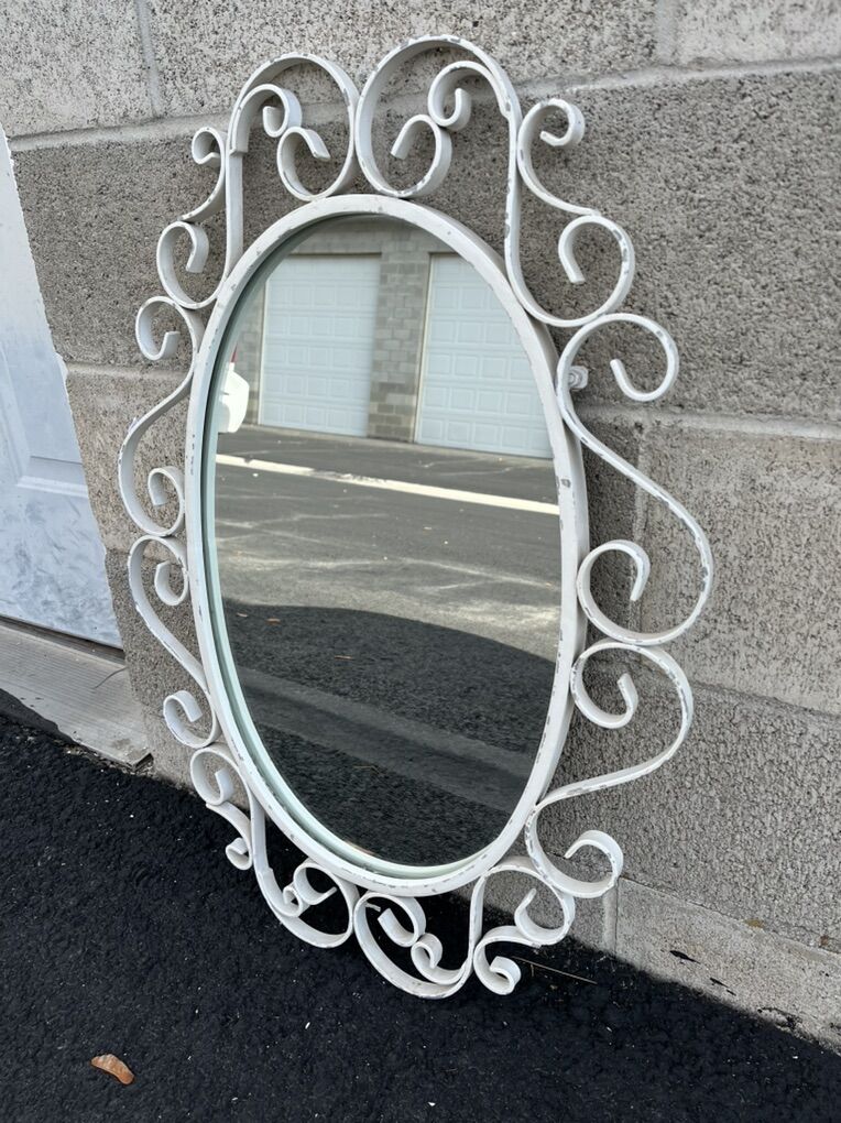 Vintage chippy iron framed mirror. This is a nice quality mirror, perfect for anywhere in your home. Measures 30x 22 overall, 21x14 mirror. Pickup in River Heights, cash preferred.