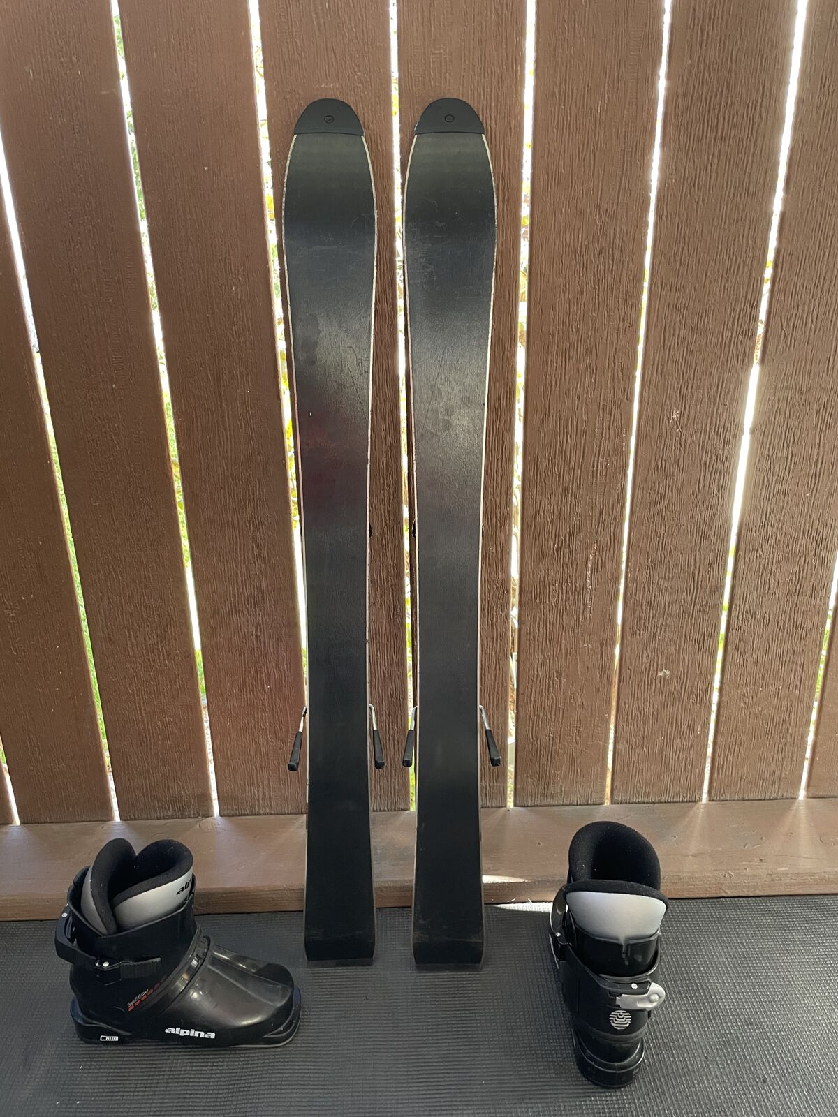 VenmoAlpina "Condor" RXC skis 90cm with Tyrolla SL45 adjustable binding and Alpina boots youth size US 10 in good used condition. Everything works good, nothing wrong with them.