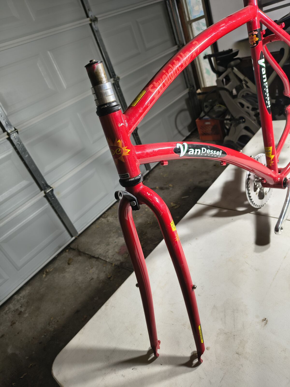700c Van Dessel Straight Up townie bike. med/lrg See pics for measurements. Designed only to run coaster or drum brake or go fixie. Got rack and fender mounts with great clearance for a gravel tire. Perfect winter commuter! Comes with Ritchey headset and cranks. $100 cash/venmo/paypal. No shipping.