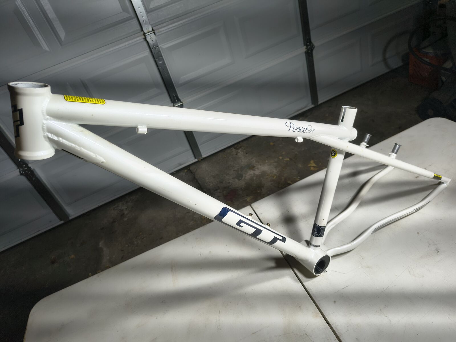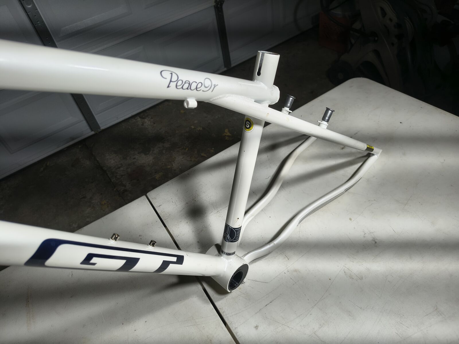 PayPalNOS GT Peace 9er small 29er bike. Older model for rim brake only. Has eccentric BB to run singlespeed only (no derailleur hanger) I do have some basic 29er wheels that would work and a fork to sell also. 175 OBO cash/venmo/paypal. No shipping.