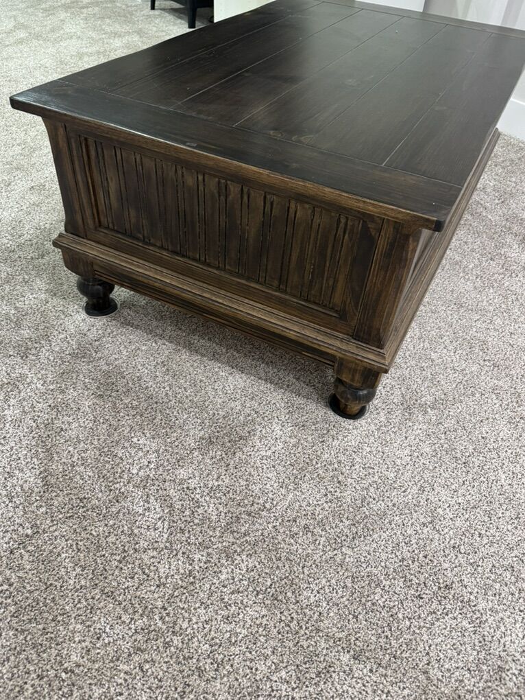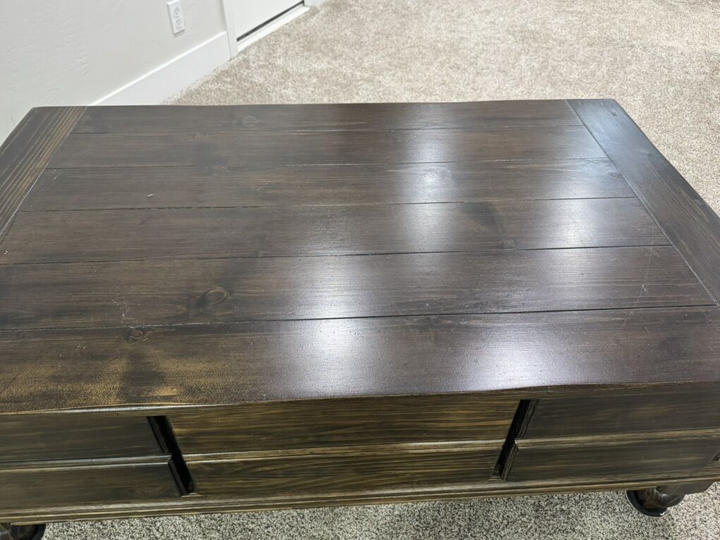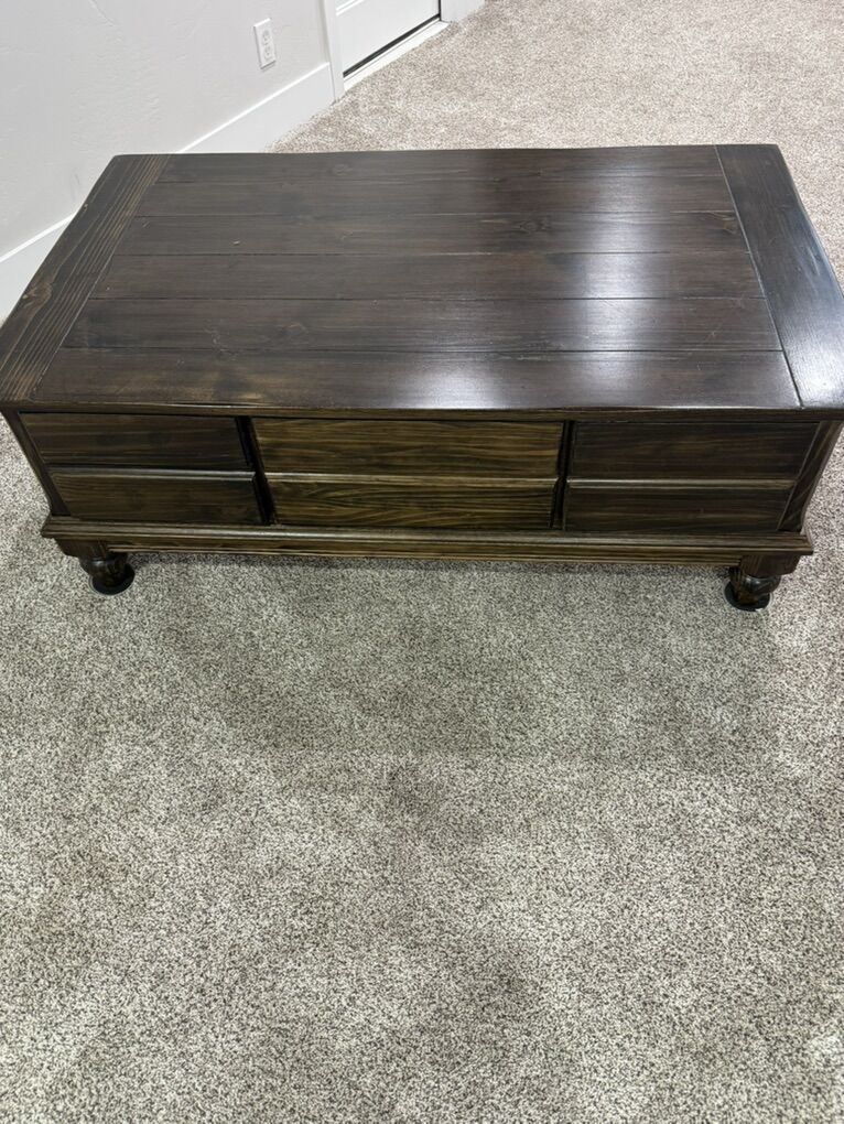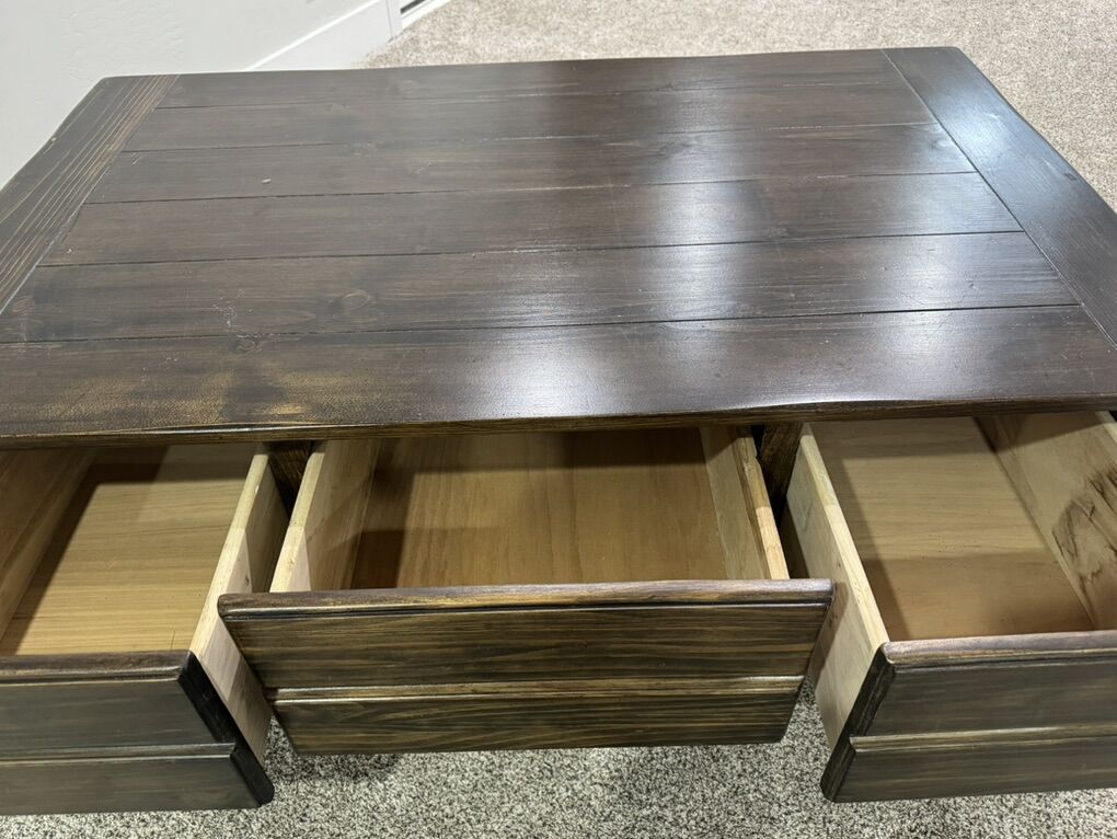 VenmoStainable all wood coffee table, great condition. Newly refinished. No pulls cause we decided to sale it and figured whoever bought it would want to pick it up their own. Dimensions in the photos. Call or text anytime. Make me an offer