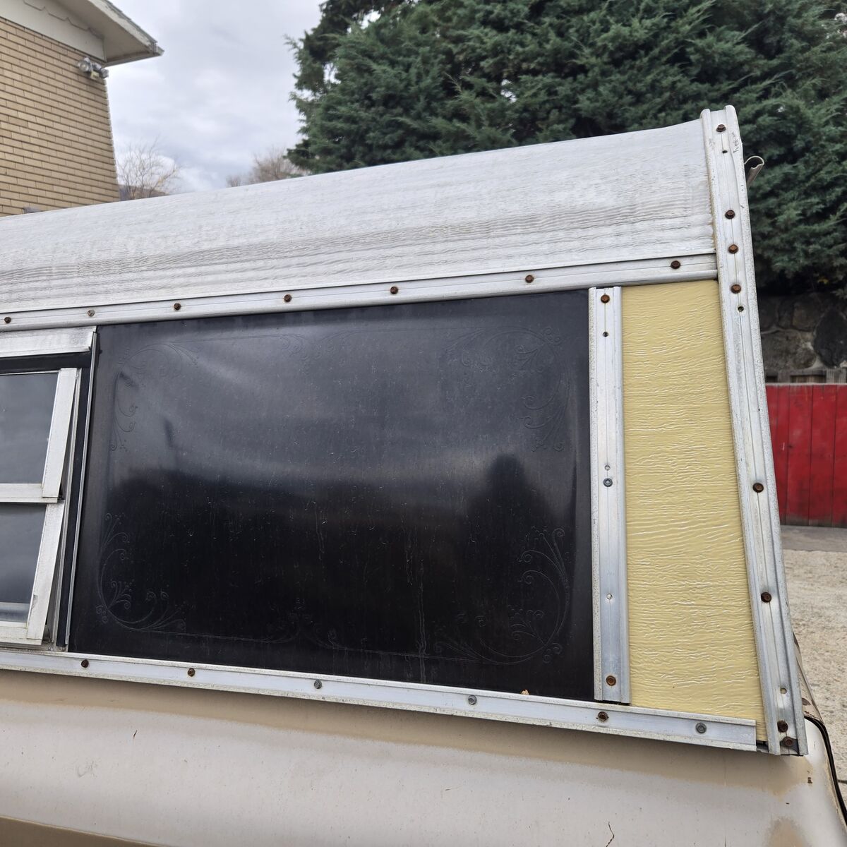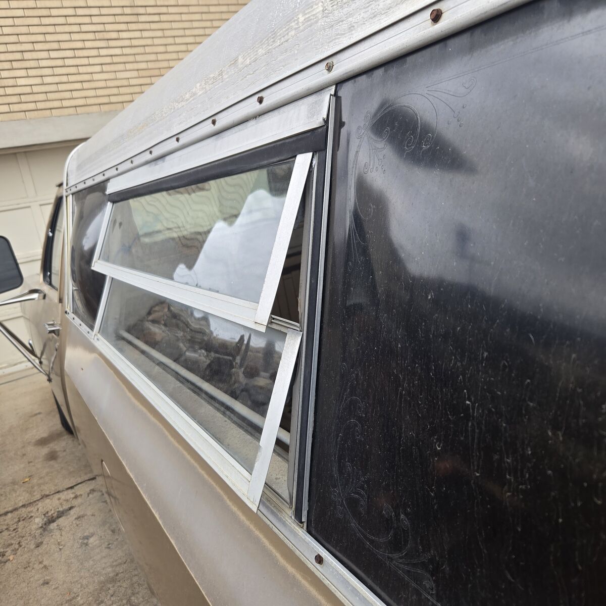 VenmoMissing the back glass, side windows angle out for ventilation.