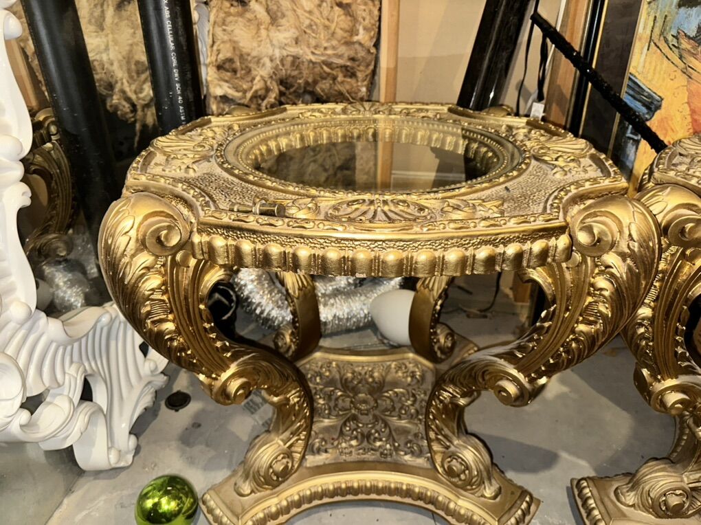 Antique Gold End Tables with glass in the middle. These beauties are solid!