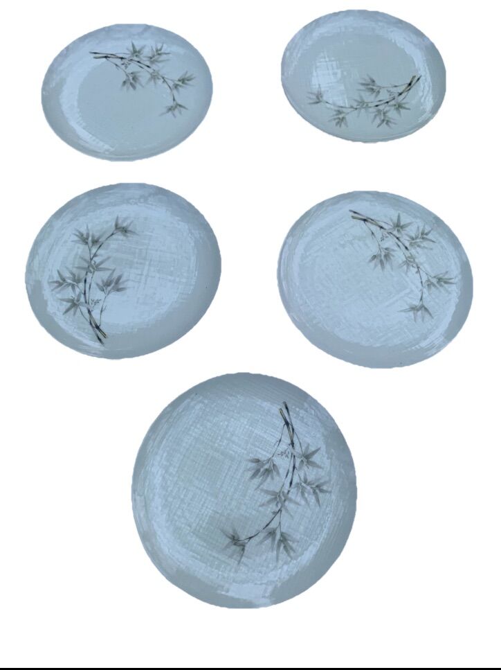 Seyei Textured Bamboo Green Set of 5 Plates 7.5 - Fine China Nagoya Japan
