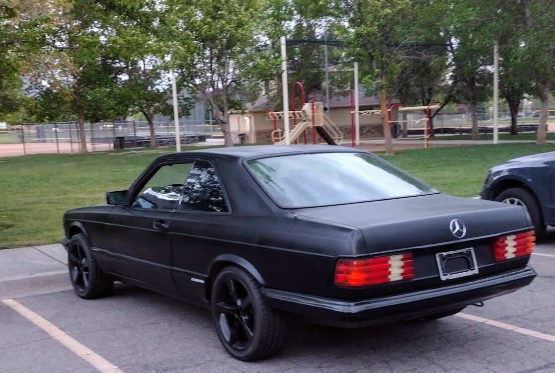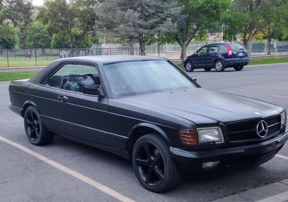 1986 SEC 560 with euro body from a grey market import. Project. Sleek Satin black repaint. Starts, runs rough because the exhaust is off and O2 sensor removed. Comes with custom exhaust.