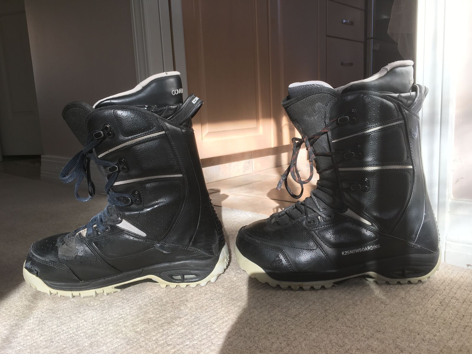 For sale are a pair of men’s K2 Raider snowboard boots. They are men’s size 9.5/mondo size 27.5 and are in good to very good condition. They come with K2 footbeds and are colored black with a small amount of white-grey trim. $50