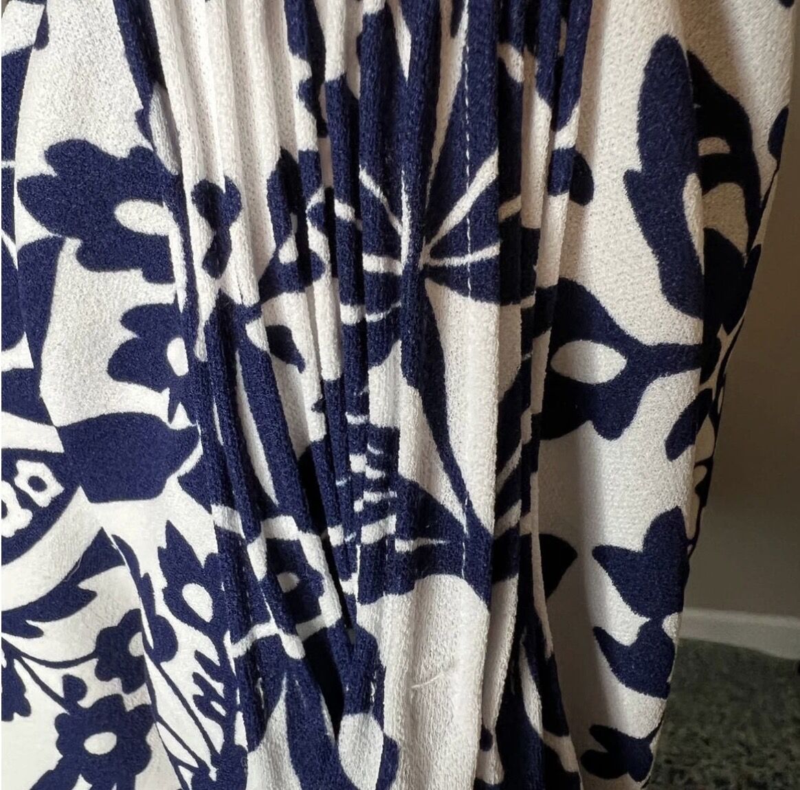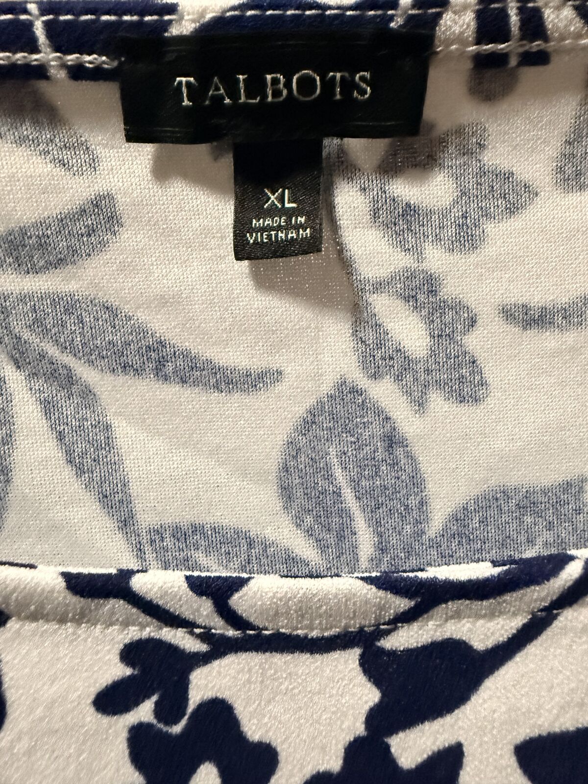 VenmoWomen’s XL Talbots brand shirt. It is in like new condition. It is a cream and navy blue colored shirt. It is very comfortable. Has nice detailed plates on the side of the shoulders. Cash or Venmo