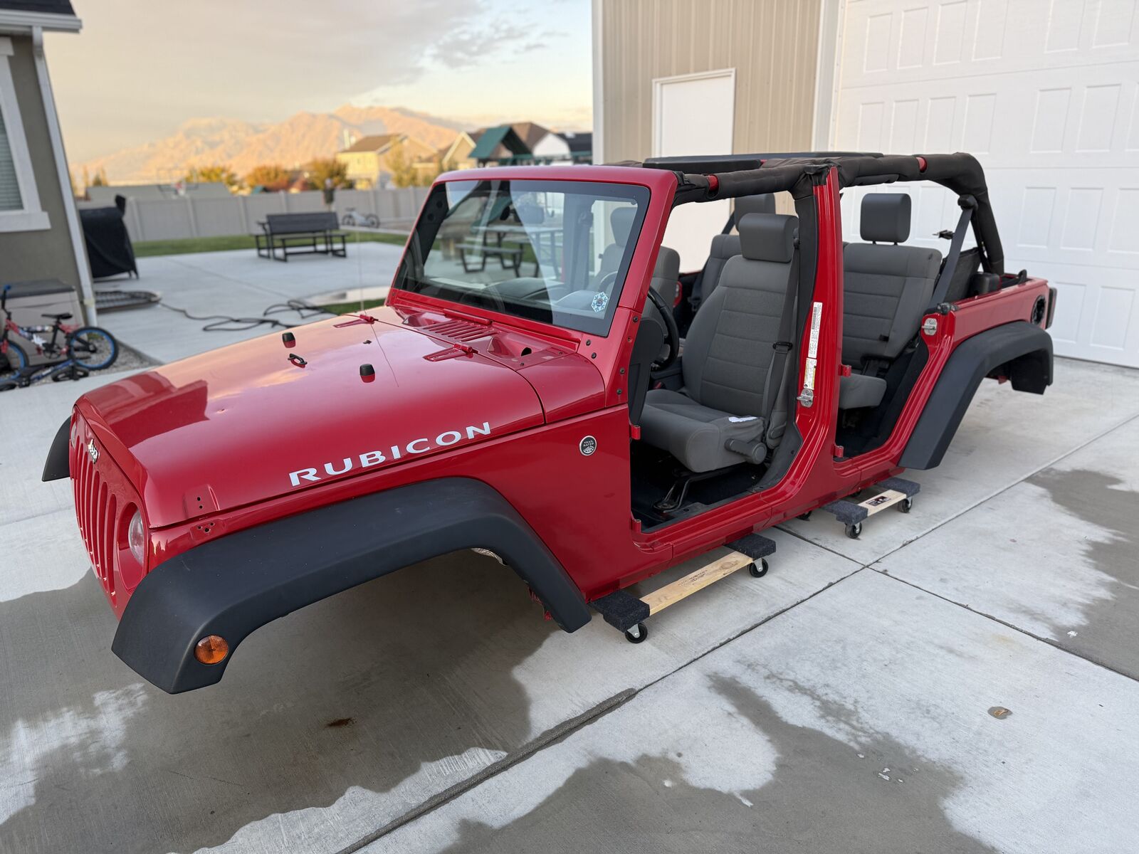 Clean and mostly complete tub from a 2008 Jeep Wrangler Unlimited Rubicon. As seen in pictures, Title is included with sale.