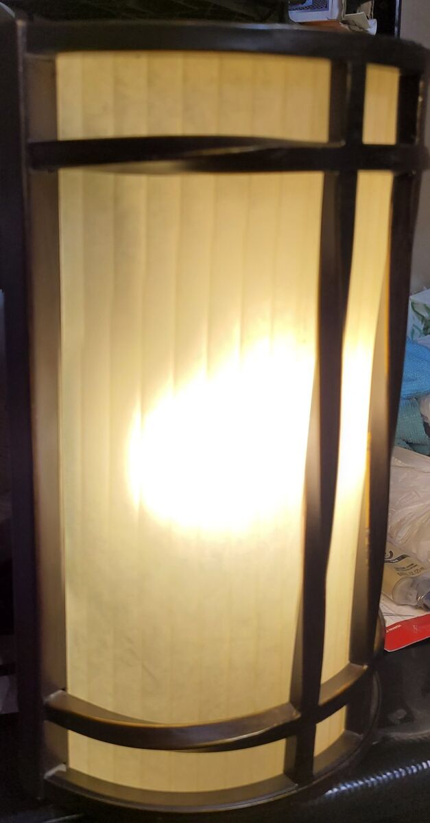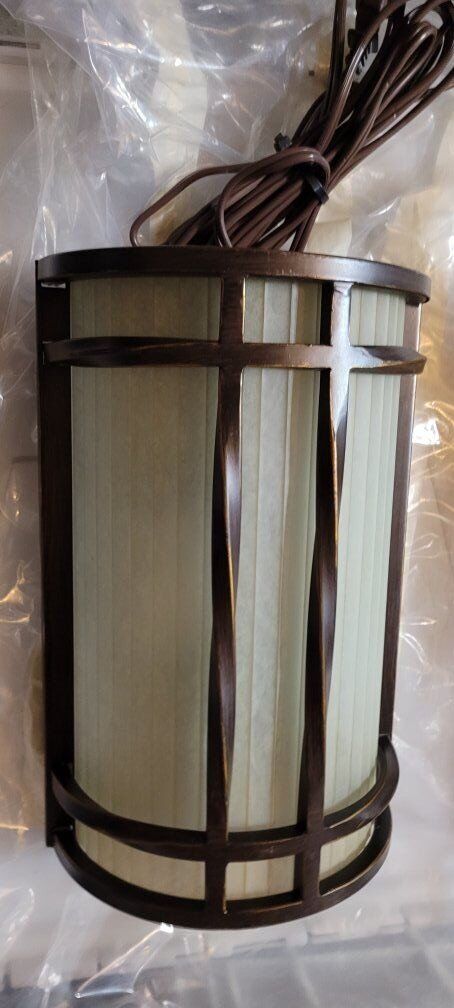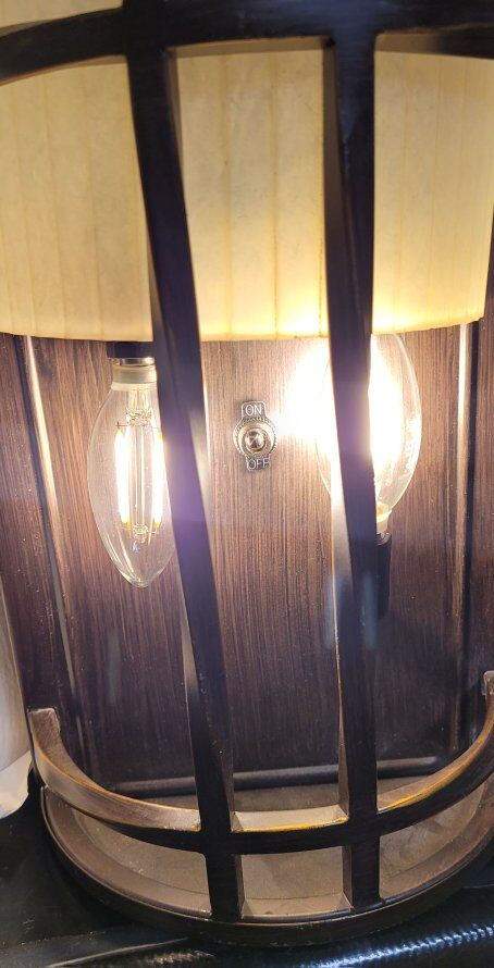 wall sconce pair. dual bulb wall sconce light x2 - pair glass lense that lifts up. two Edison type bulbs in each toggle switch to trunk off. wall plug cord - wired. plug and play design. bronze. Antique style- opra house/theatre. add elegance to your room, hallway, living room etc where you have wall plugs and switch controlled wall plugs.
