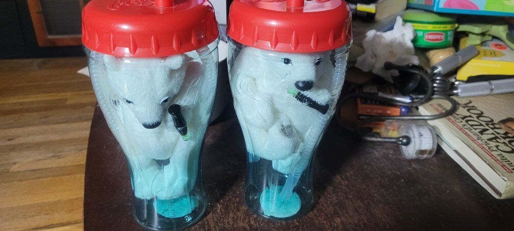 one pair Coca-Cola promotional cups with Polar bears inside. Was $20 now $10 cash only . Pick up in Ogden, Utah